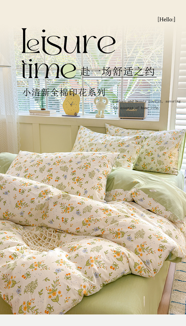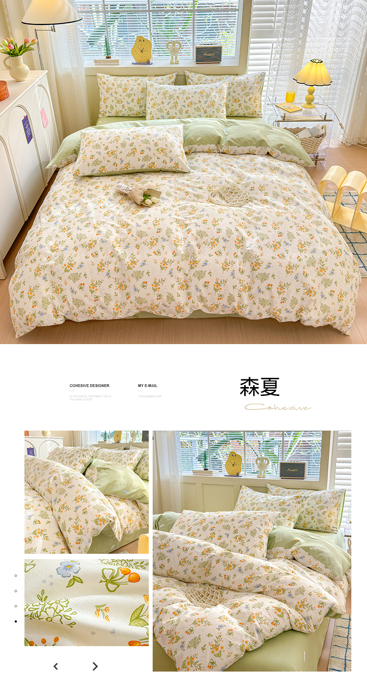 当前位置: 91家纺网 > 商品网购 > 床品套件 > 四件套 > 全棉普通四件套 > 清雅福 2024新款全棉13372小清新四件套和单品系列第四季 森夏