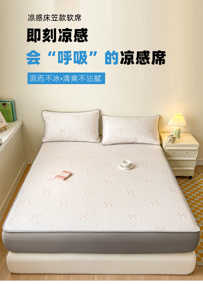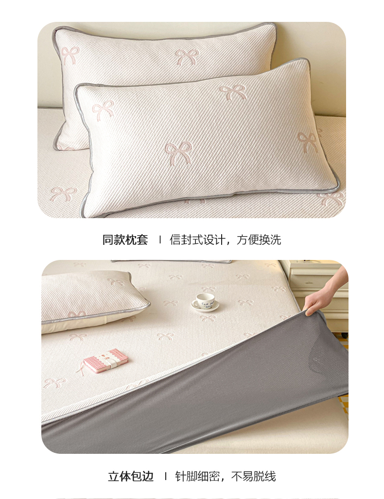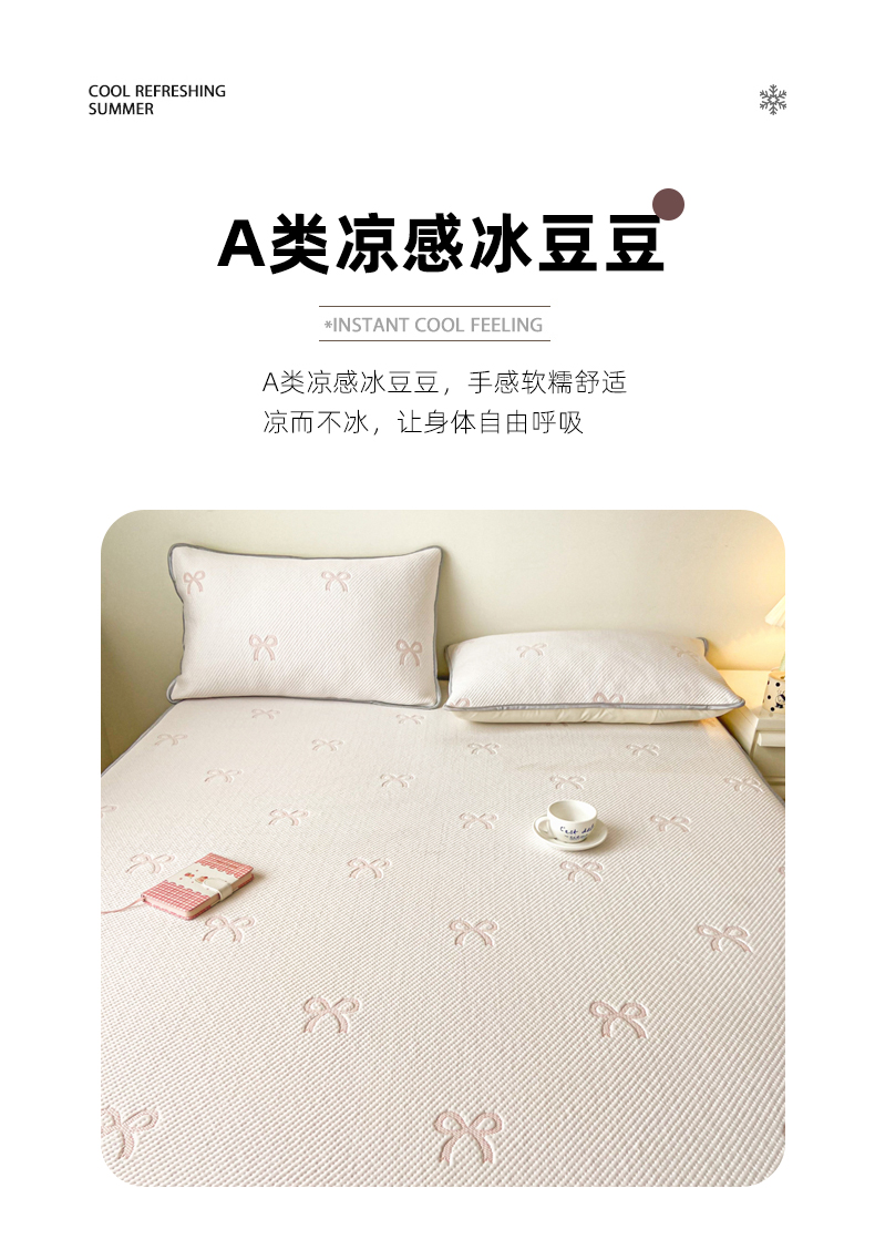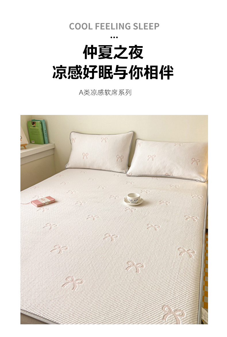 吉象家纺 2024新款凉豆豆凉感软席凉席 粉色蝴蝶结