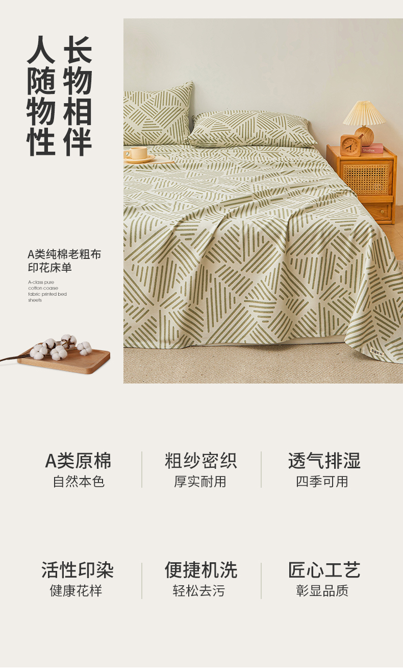 (总)居眠 2024新款A类全棉老粗布印花单品床单,丛林兔,迪卡,海潮格 咖,海潮格 蓝,简语,蓝灰,绿蔓,阡陌菱格 卡其,阡陌菱格 抹茶,热带雨林,时尚拼接 奶白,万物生,雅致灰格