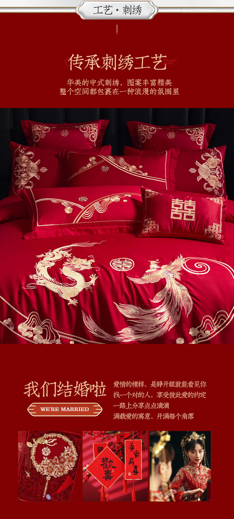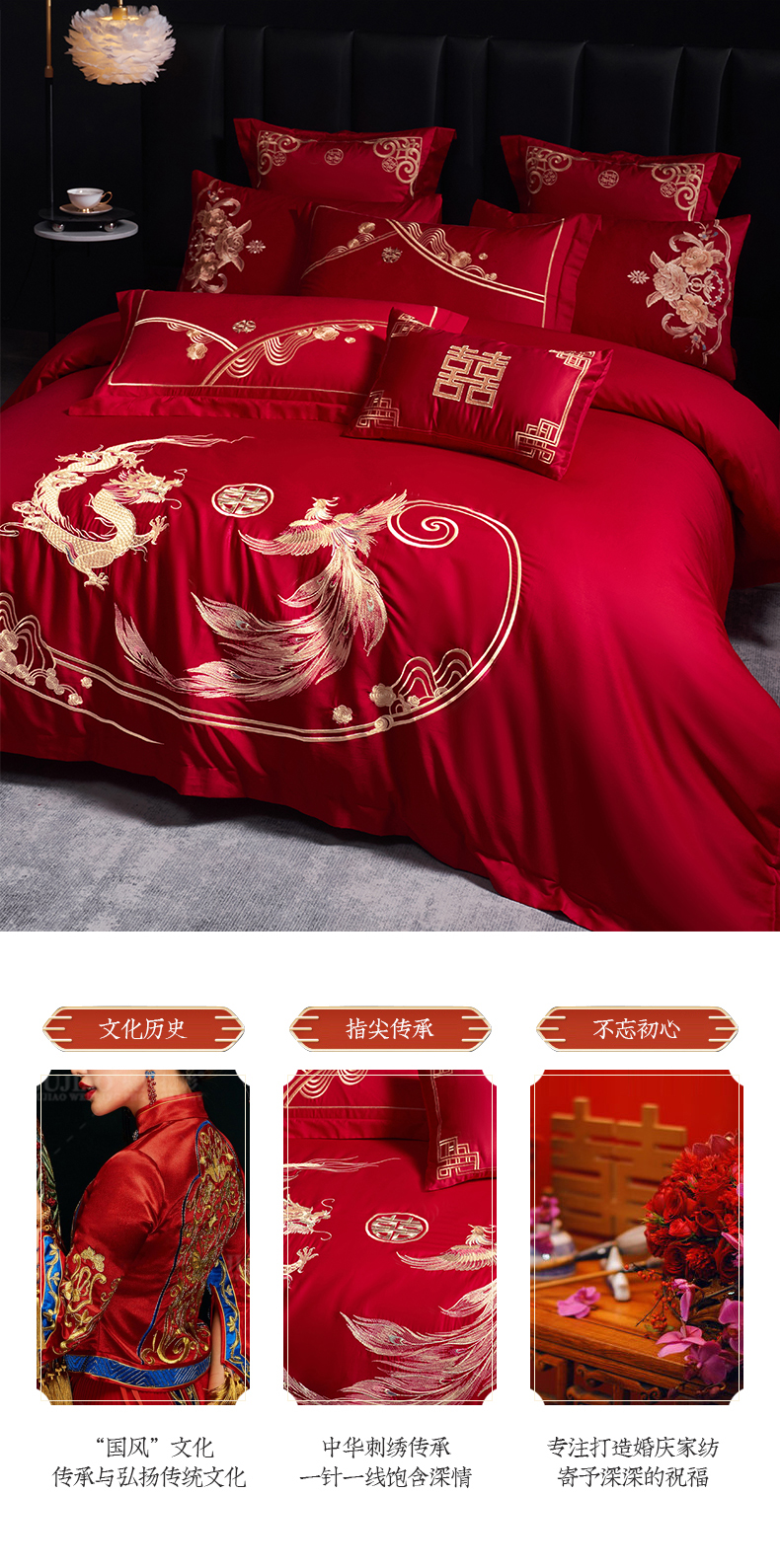 当前位置: 91家纺网 > 商品网购 > 床品套件 > 四件套 > 婚庆四件套 > 千禧家纺 2025新款全棉13372婚庆绣花系列 龙凤双飞