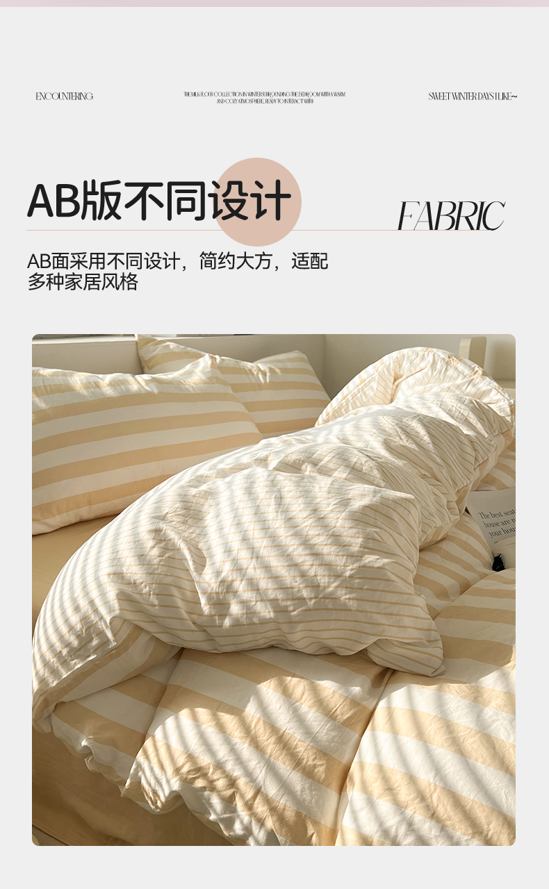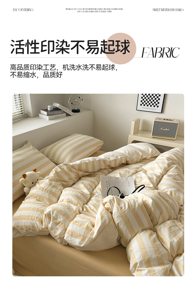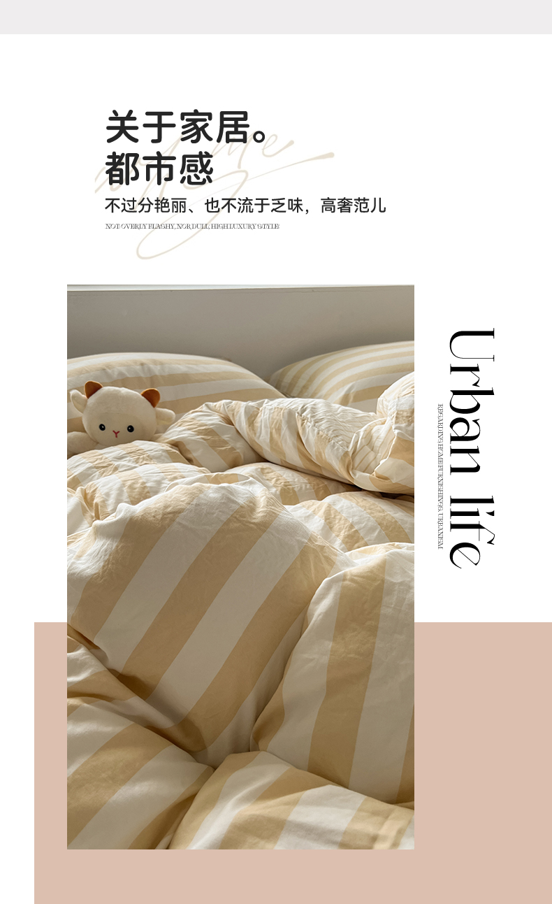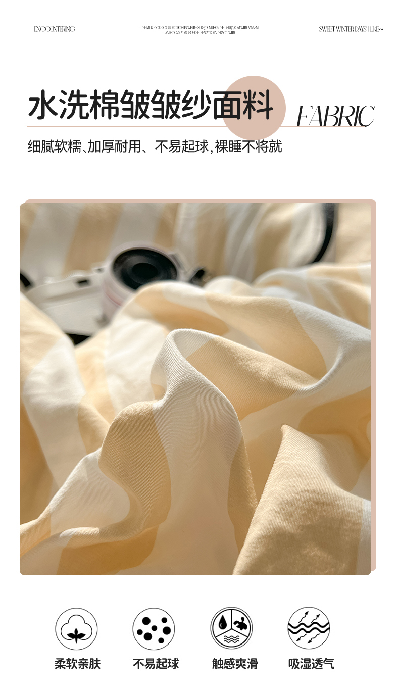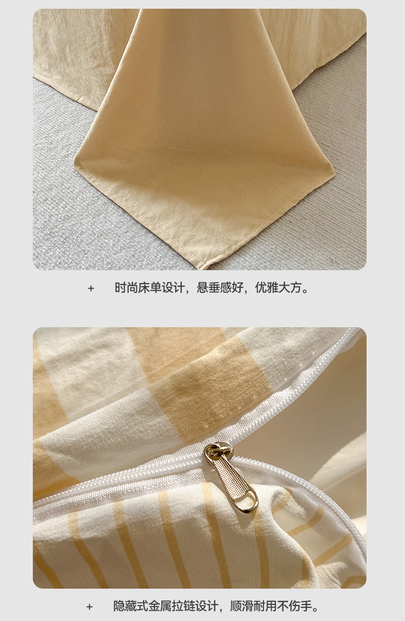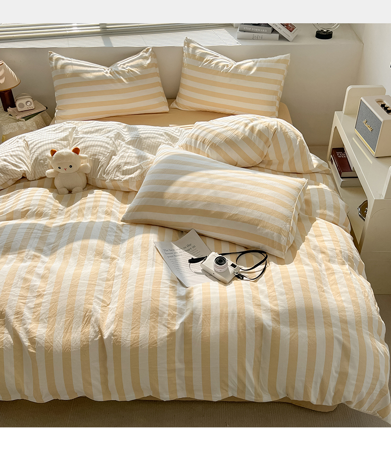 当前位置: 91家纺网 > 商品网购 > 床品套件 > 四件套 > 全棉普通四件套 > 多品 2024新款高克重水洗棉双层纱皱皱纱四件套 日系黄条