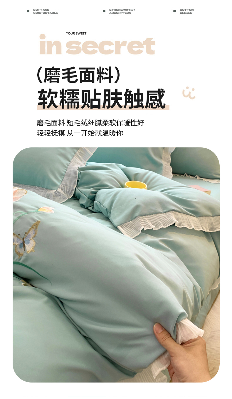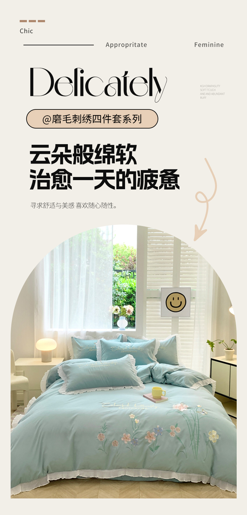 (总)凯艾玲 2024新款简约轻奢磨毛细斜纹四件套-手捧告白,豆沙粉,米白粉,天空蓝