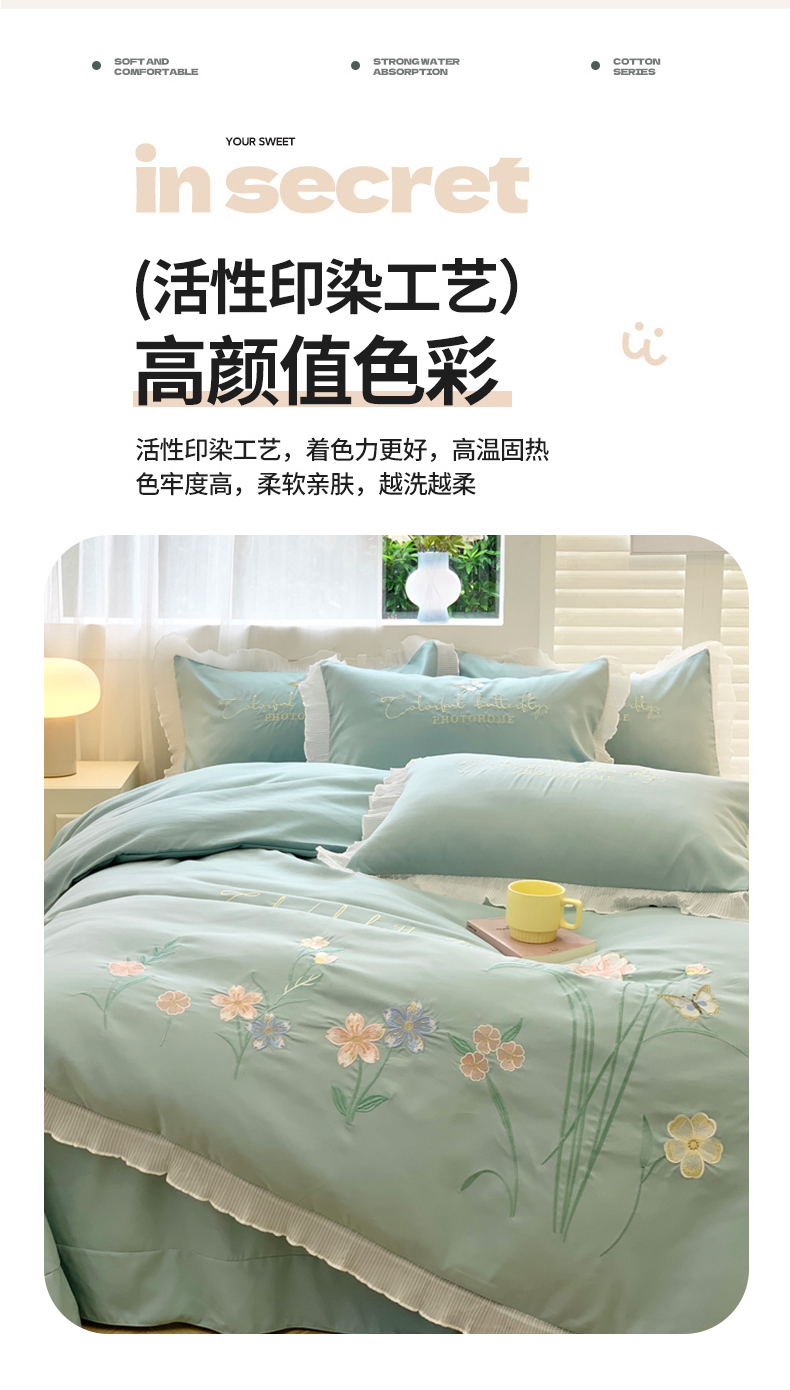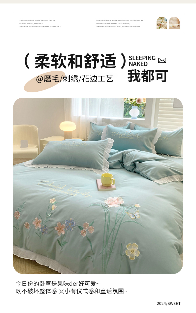 (总)凯艾玲 2023新款a类磨毛刺绣四件套,繁花之都蒂芙尼绿,繁花之都豆沙粉,繁花之都高级灰,繁花之都抹茶绿,繁花之都樱花粉