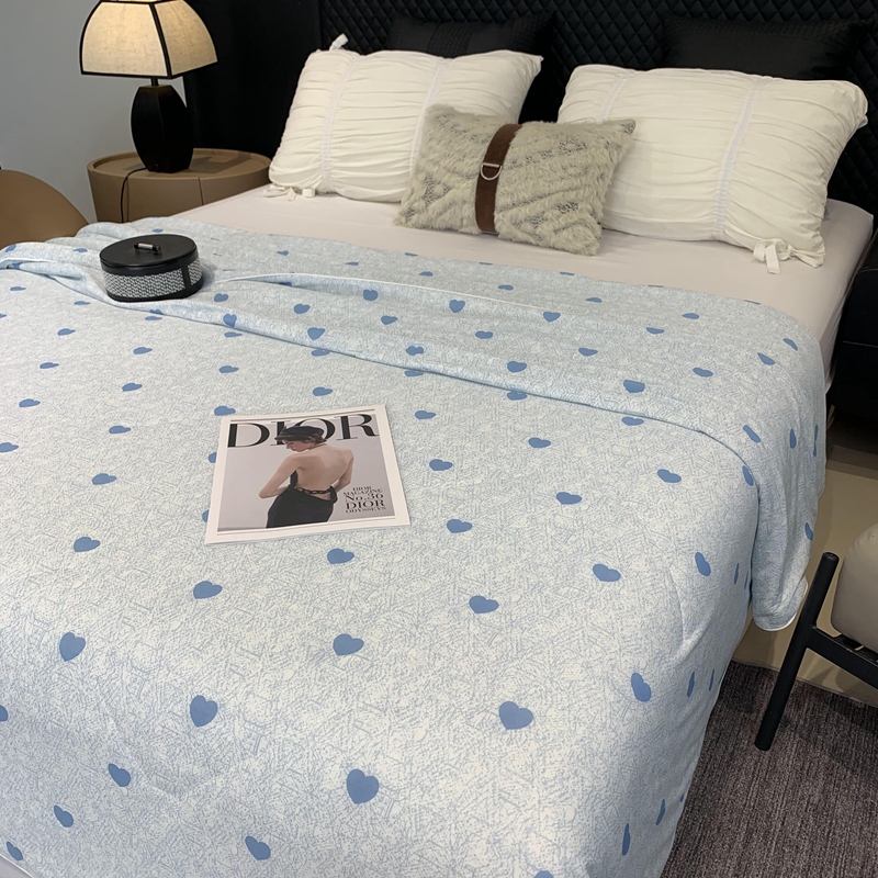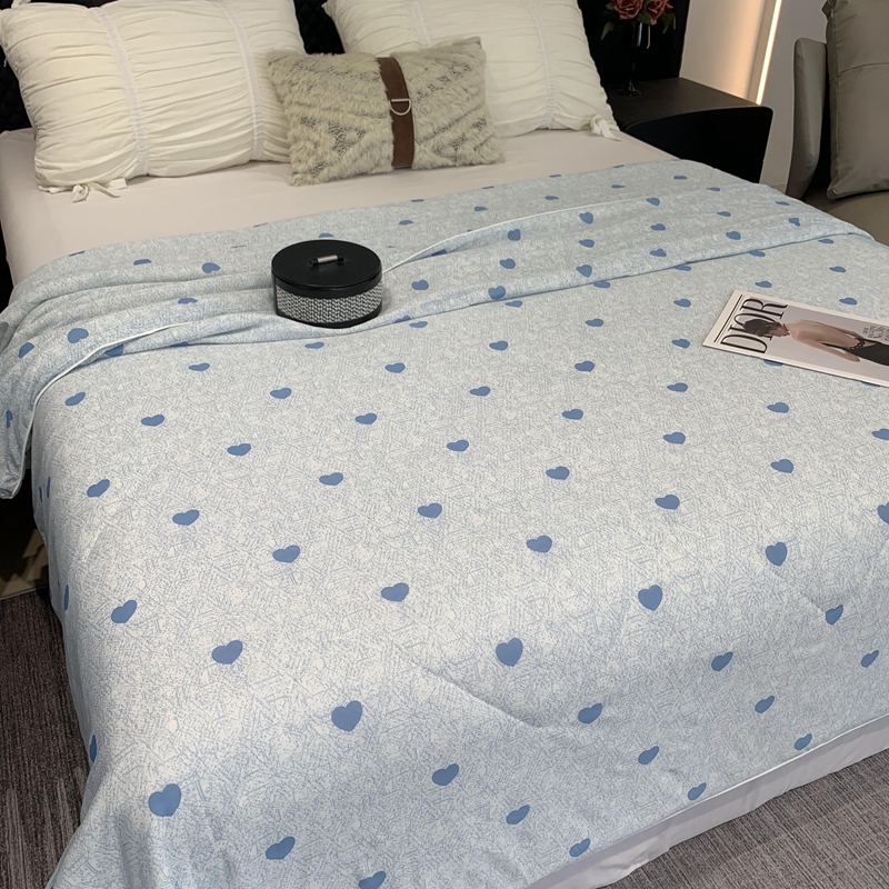 奈萝家纺 2024新款A类凉感丝小凉皮夏被可机洗夏被新品空调被小爱心蓝