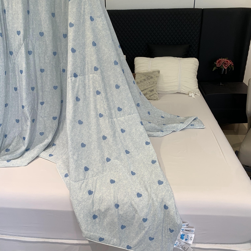 商品名称:奈萝家纺 2024新款A类凉感丝小凉皮夏被可机洗夏被新品空调被小爱心蓝