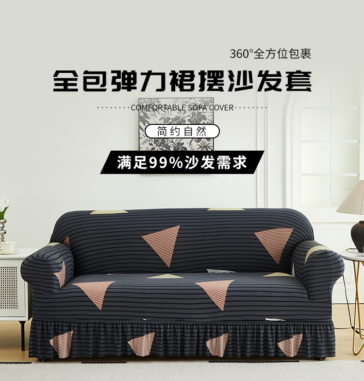 商品名称:逐日沙发套 2024新款牛奶丝印花裙摆沙发套 印花 裙摆-三角形
