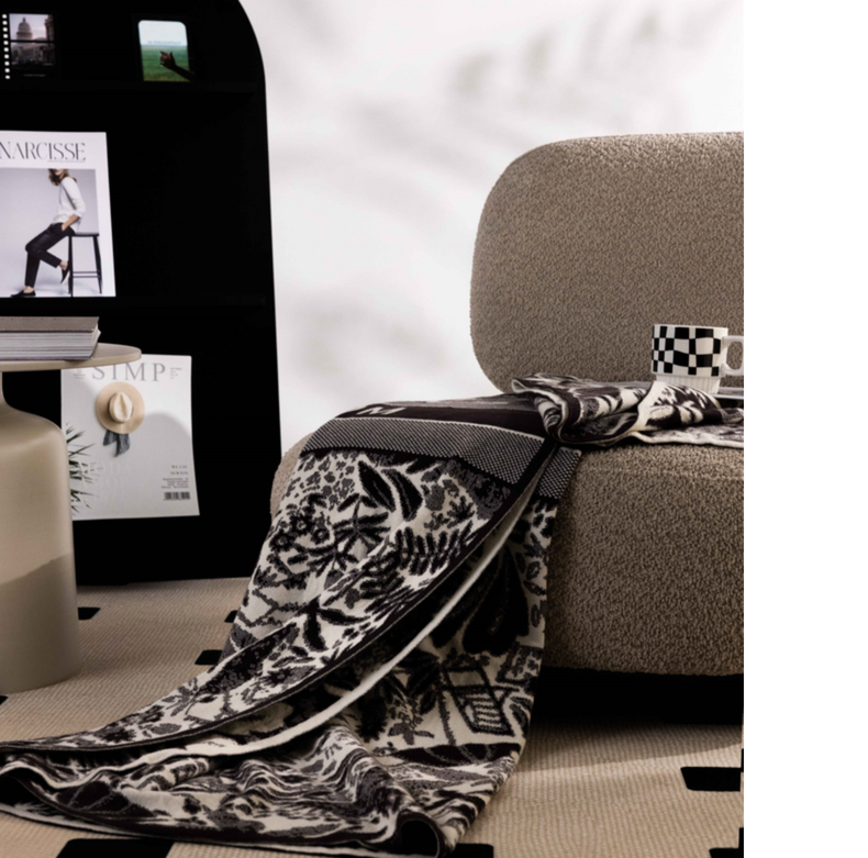 商品名称:暖绵绵家纺 2025新款轻奢气质时尚兔绒纱针织毯-缇卡 缇卡-黑色