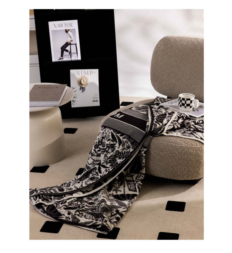 暖绵绵家纺 2025新款轻奢气质时尚兔绒纱针织毯-缇卡 缇卡-黑色