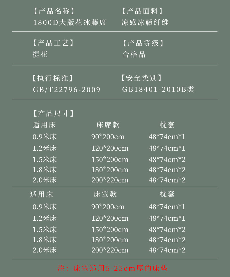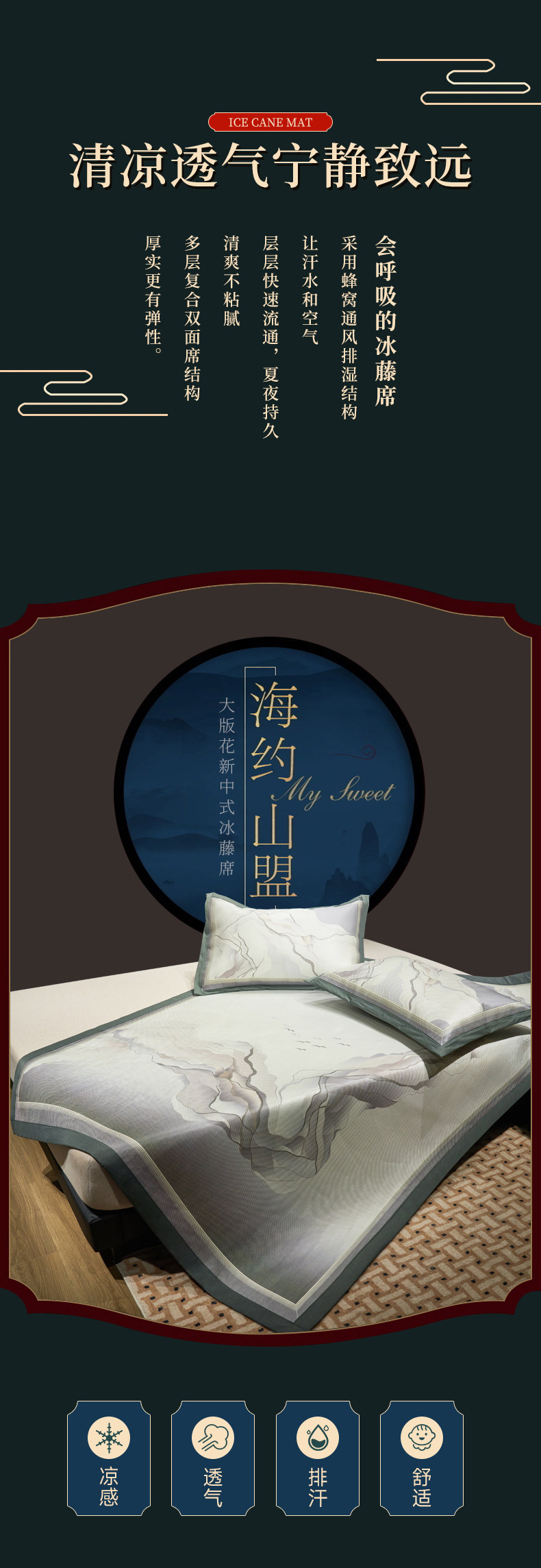 商品名称:21度C 2024新款冰藤国风凉席床席款 海阔天空