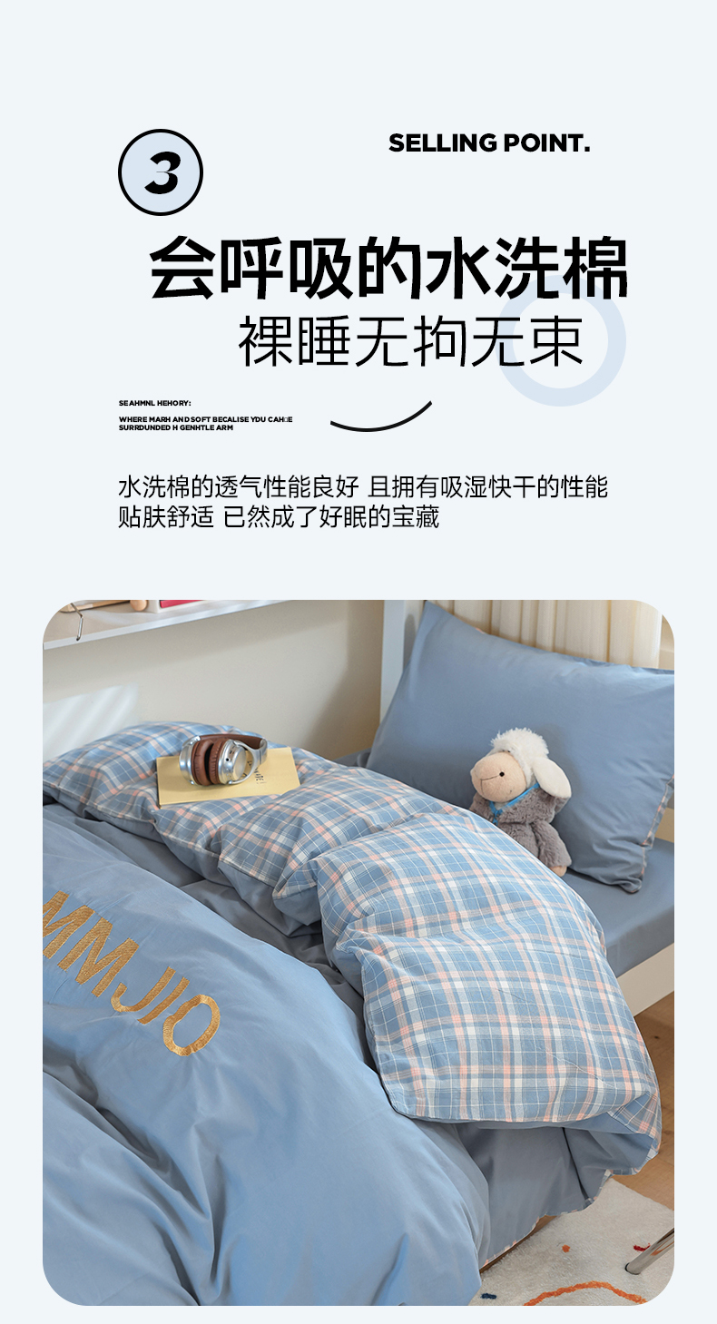 当前位置: 91家纺网 > 商品网购 > 床品套件 > 四件套 > 全棉活性四件套 > 寐眠 2024新款全棉水洗棉刺绣学生三件套四件套宿舍套件 冰川苍蓝