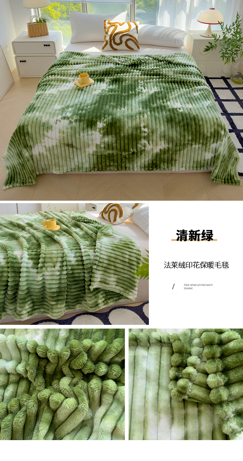 商品名称:枋梢家纺 2024新款印花法莱绒毛毯加厚保暖披肩小毯子沙发盖毯空调毯 清新绿
