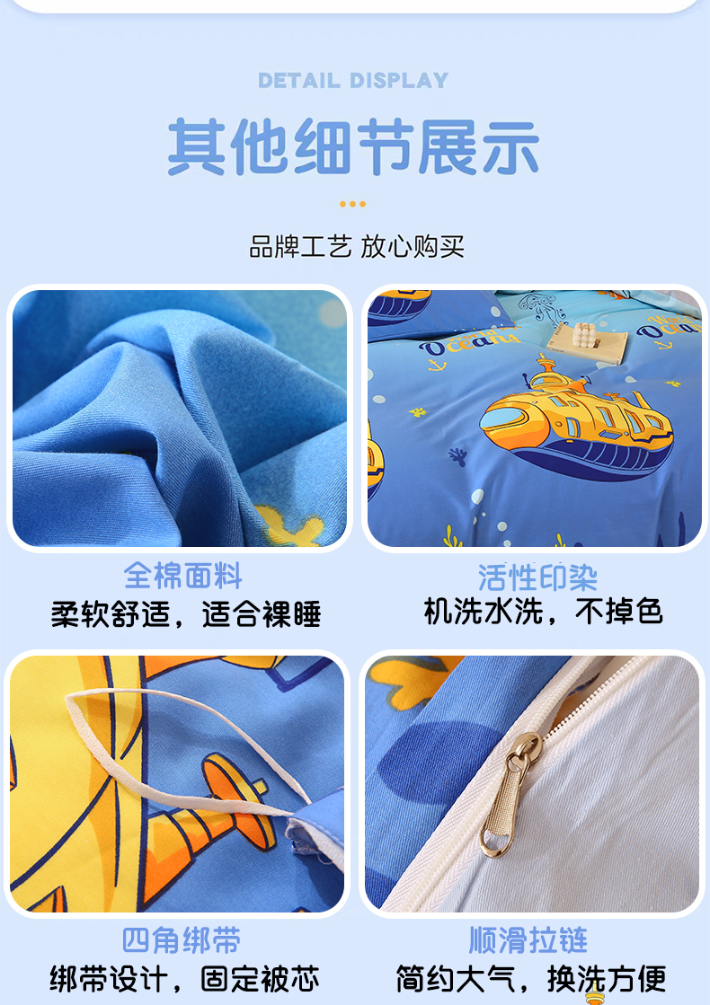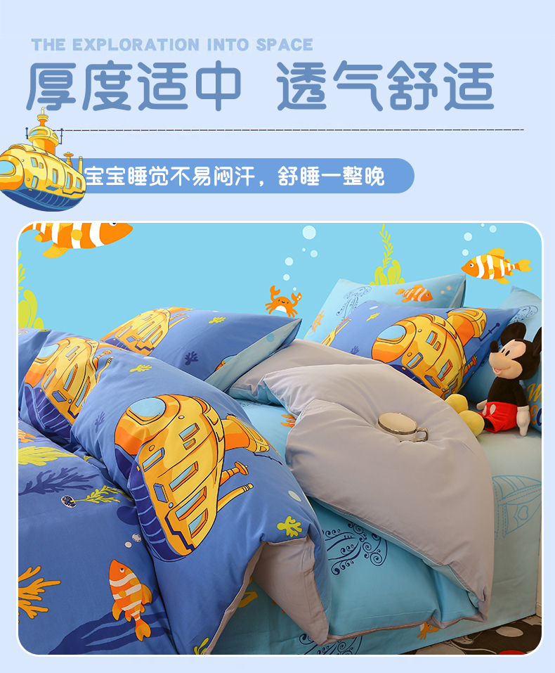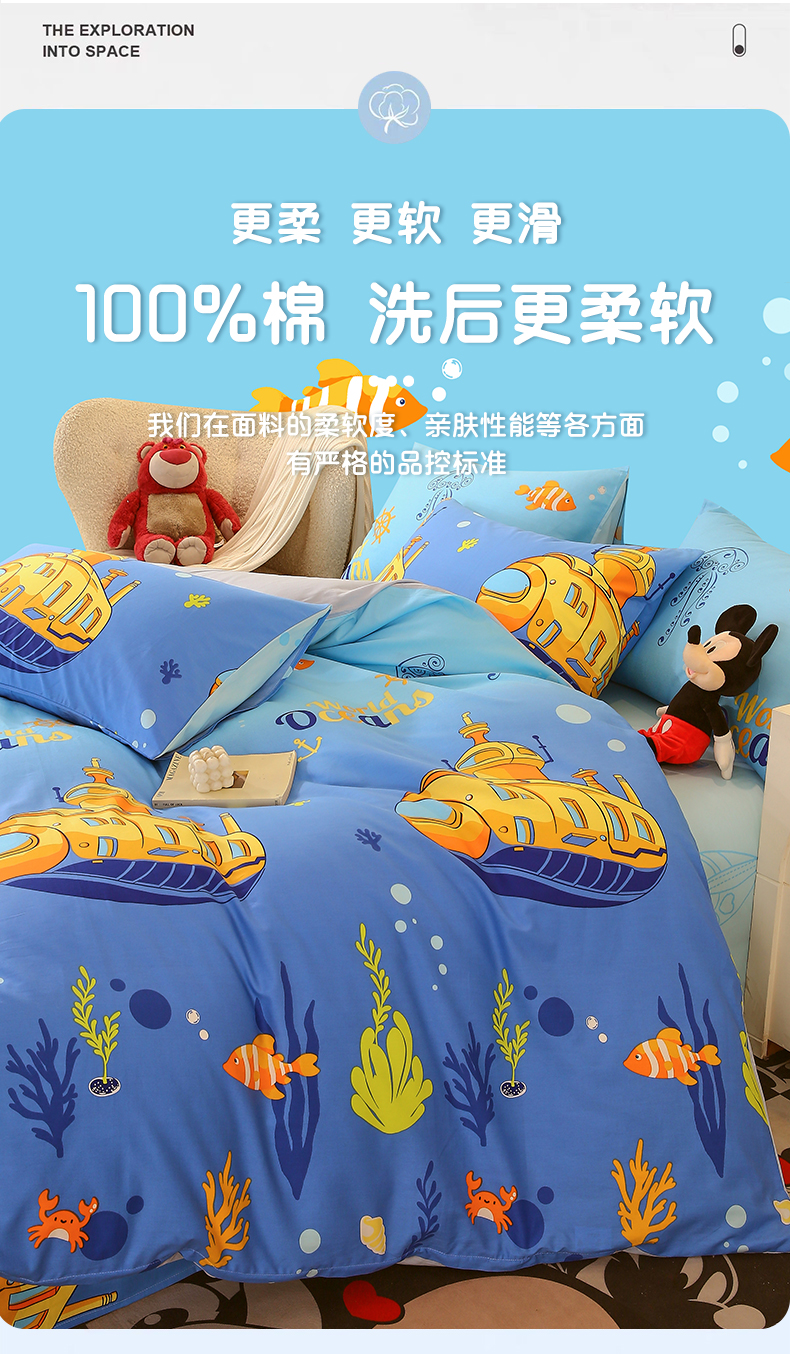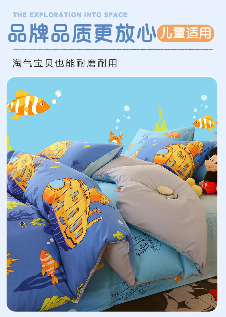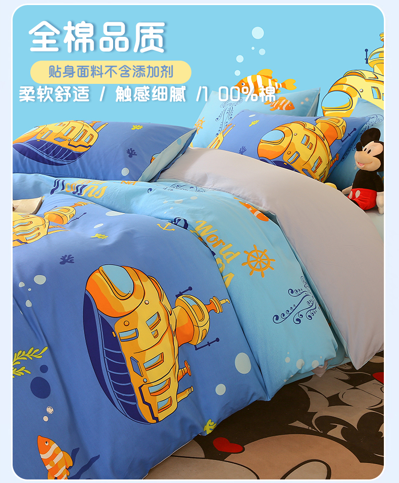商品名称:金鑫汇家纺 2024新款全棉印花单被套 海底探秘