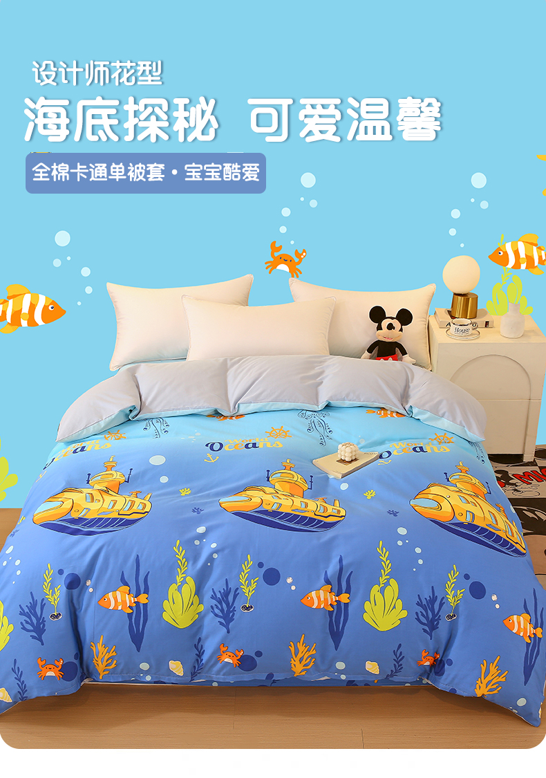 金鑫汇家纺 2024新款全棉印花单被套 海底探秘