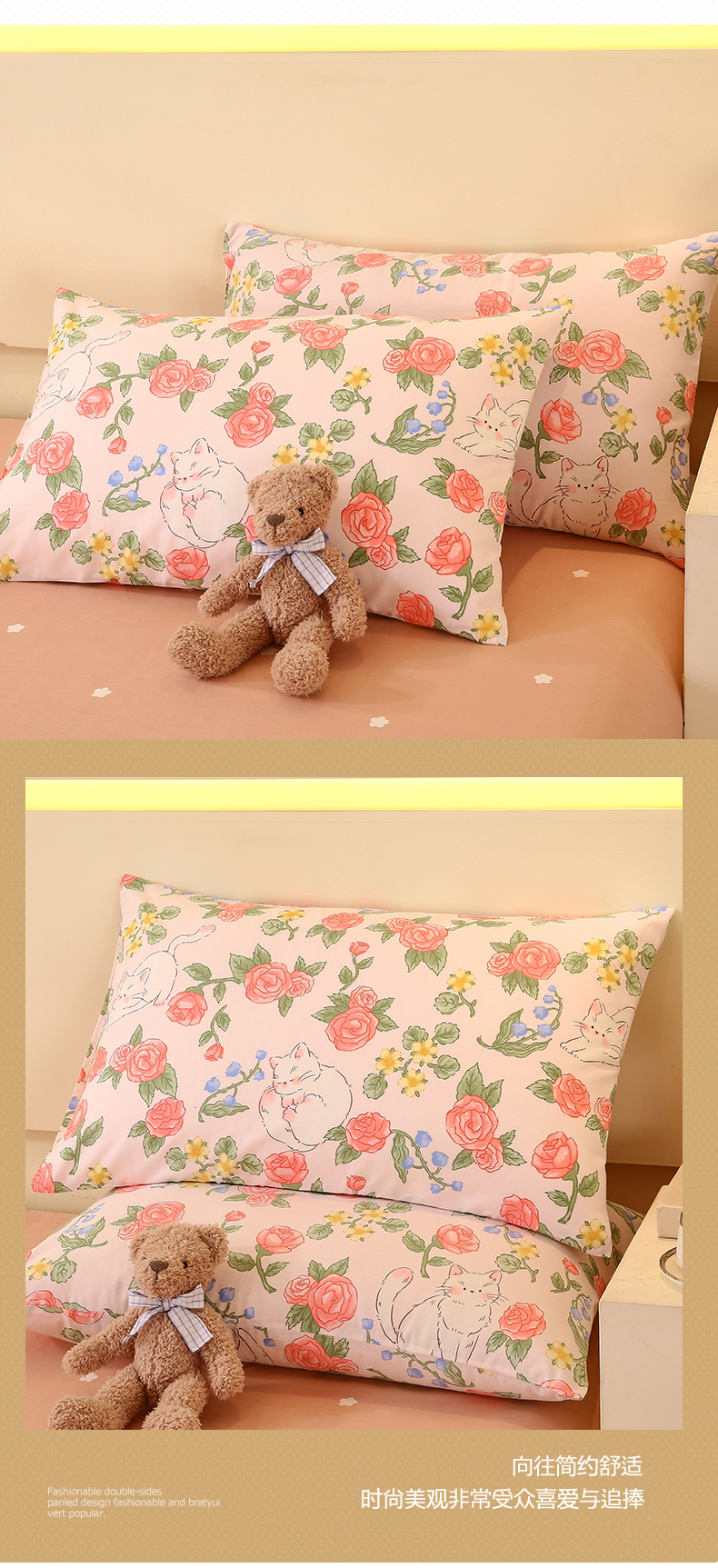 金鑫汇家纺 2024新款全棉印花单枕套 微洛花园