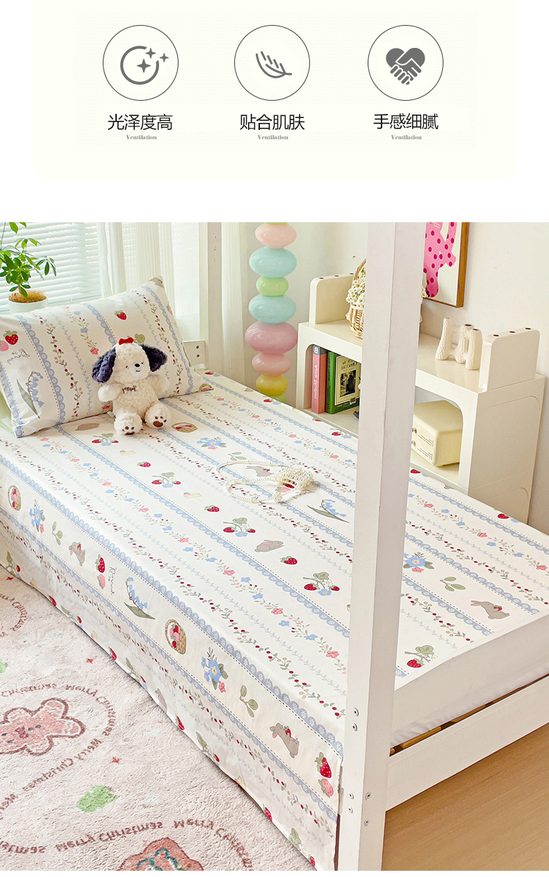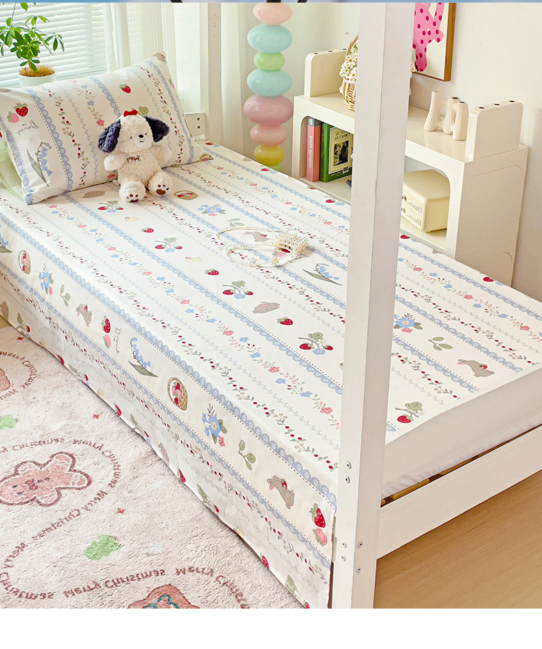• 91家纺网 家纺一手货源 找家纺 名兮家居 2024新款学生床上下铺全棉床单  草莓兔兔