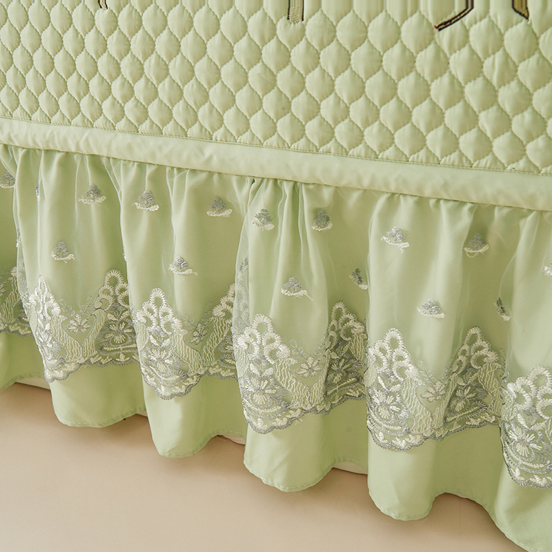 商品名称:紫碧螺家纺 2024新款刺绣花边床裙式床盖(仿天丝) 玉色