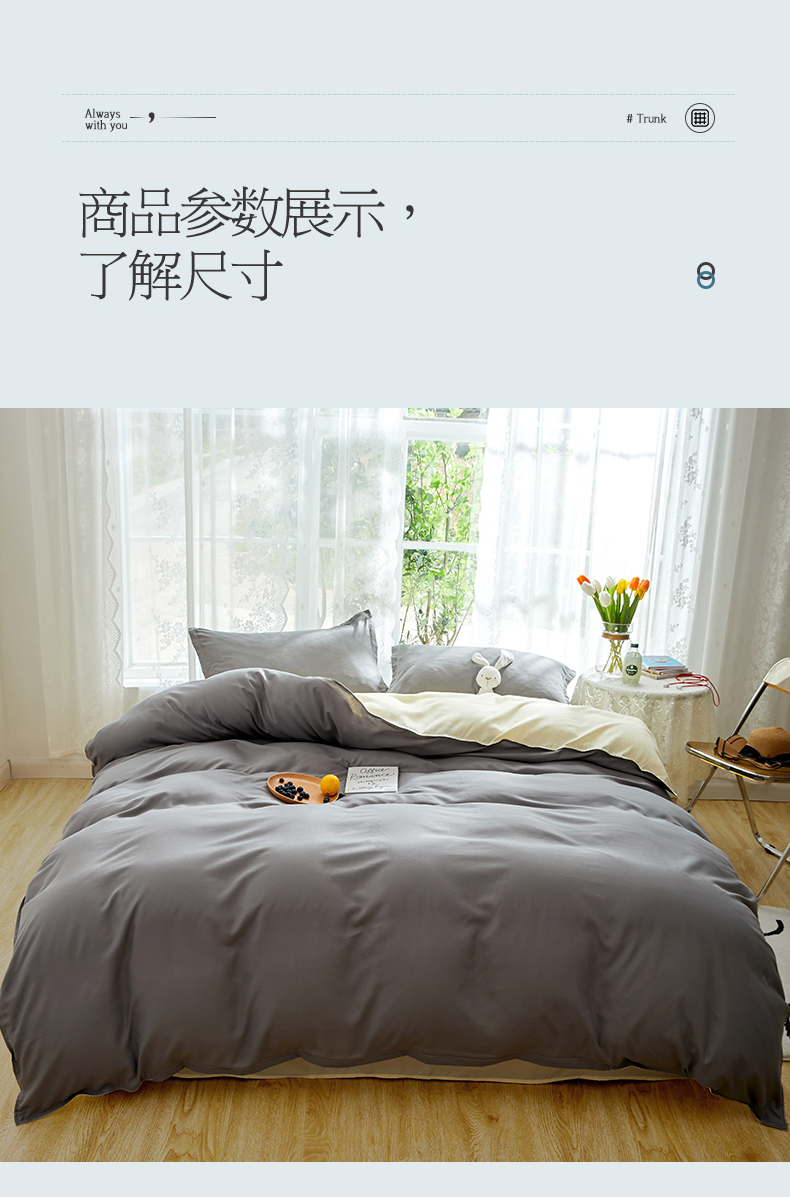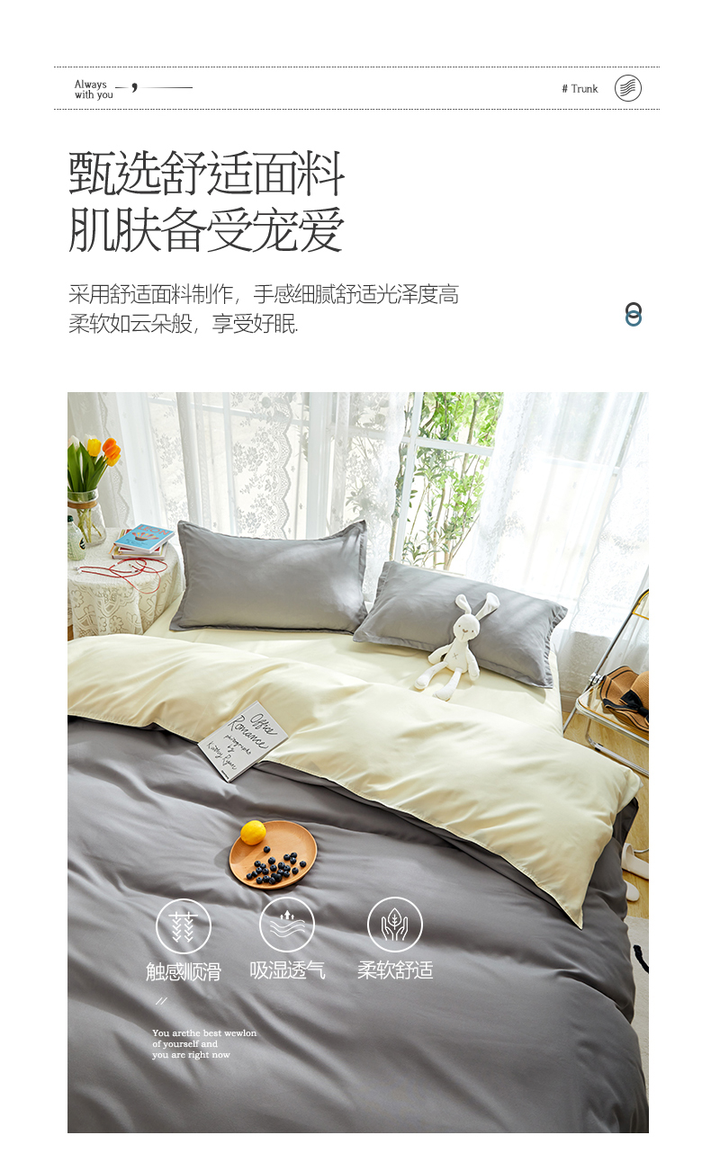 商品名称:悦织湾家纺 2025新款纯色床单款芦荟棉四件套 浅灰米色
