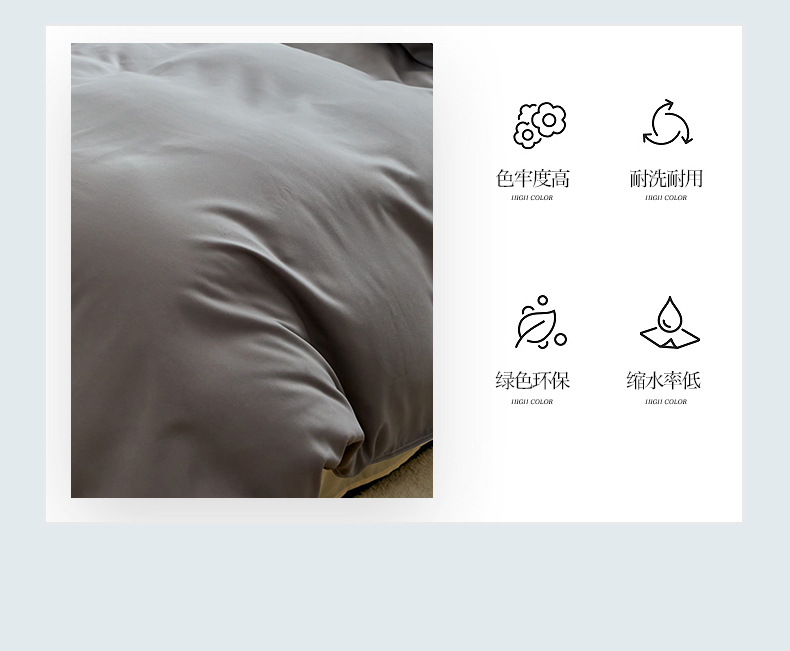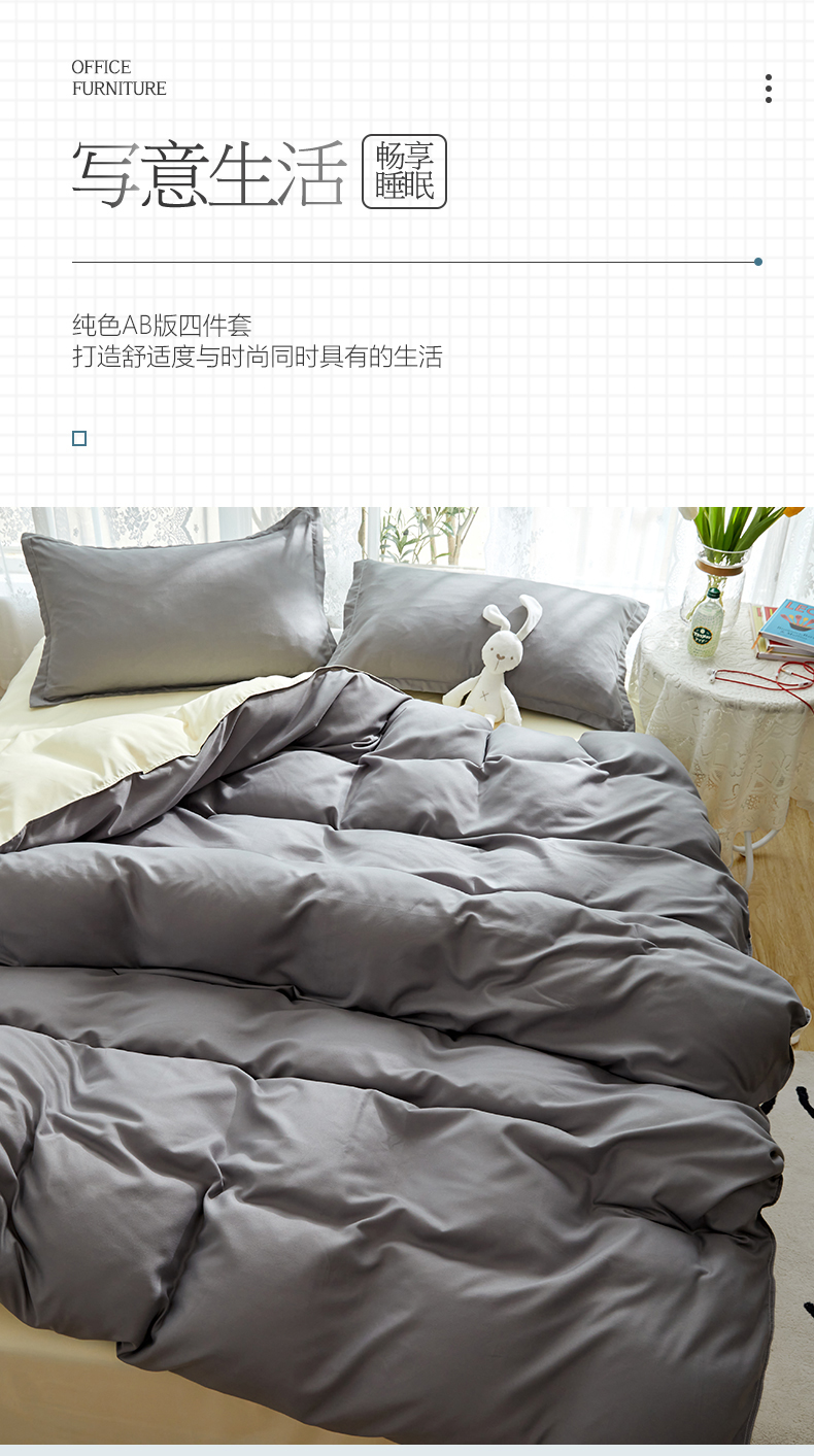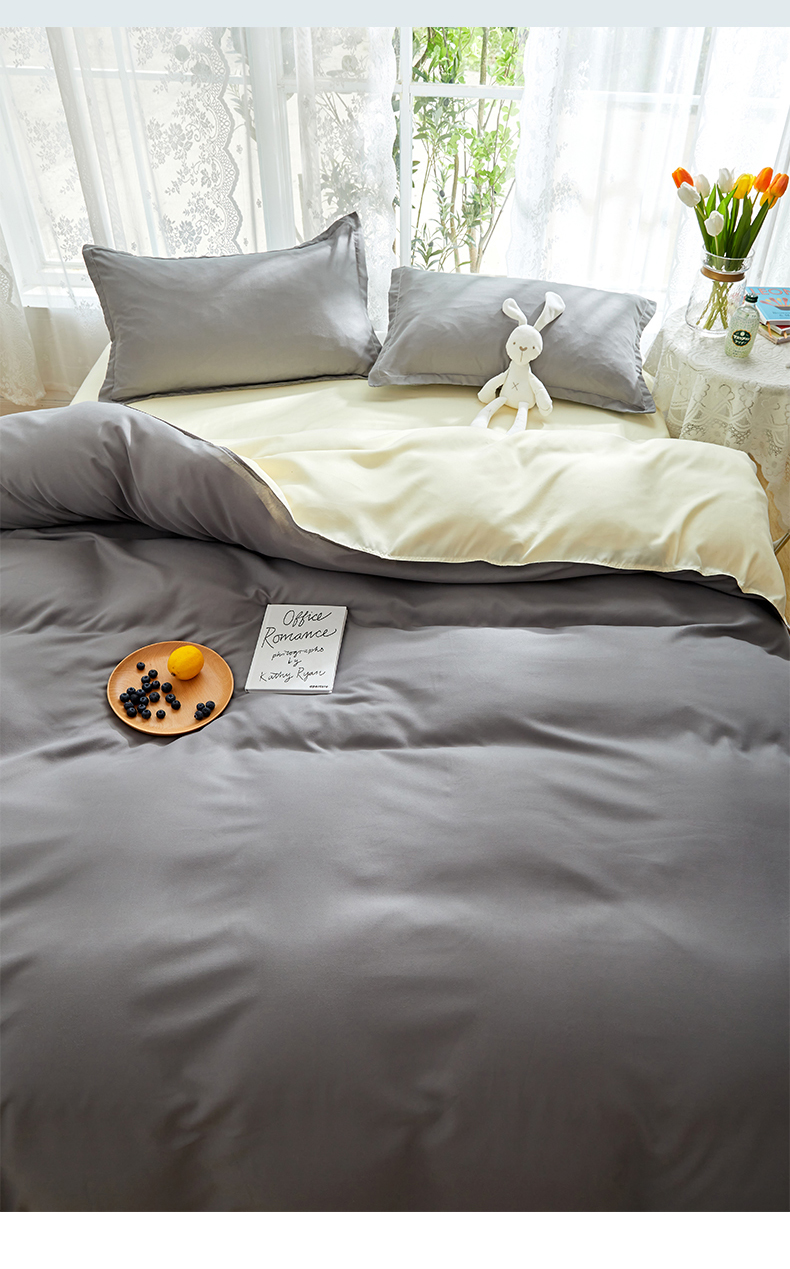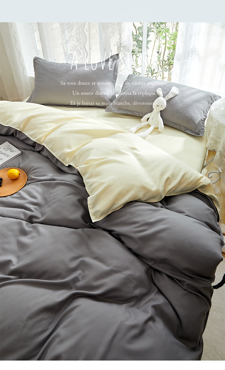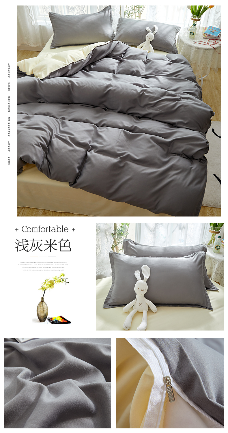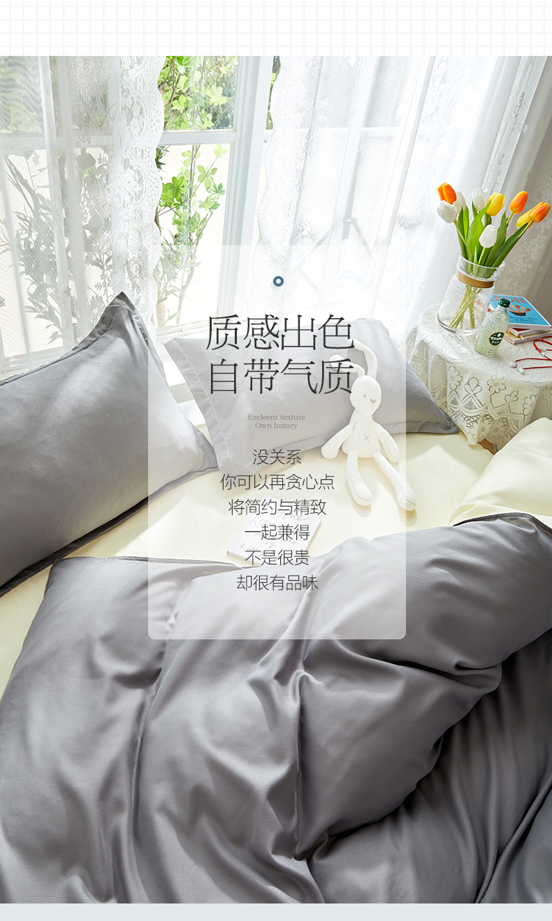 悦织湾家纺 2025新款纯色床单款芦荟棉四件套 浅灰米色
