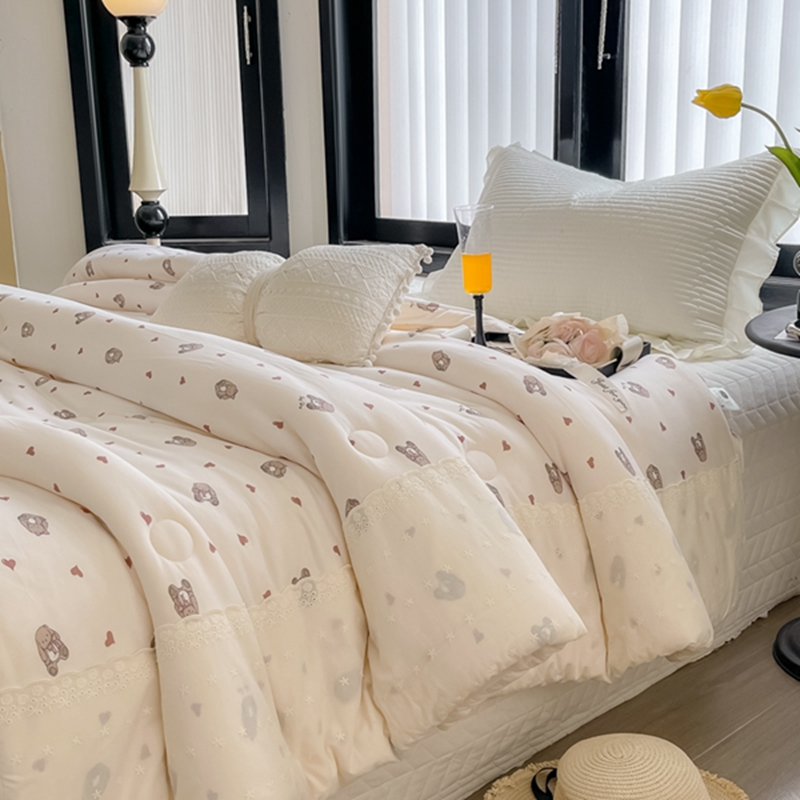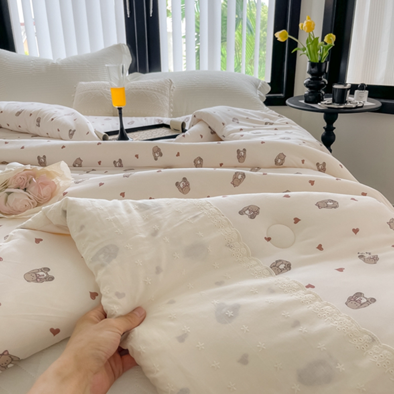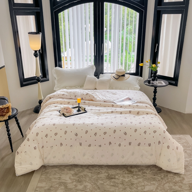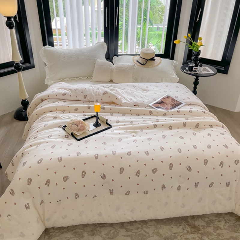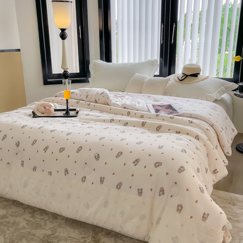 莱豫家纺 2024新款法式复古针织花边夏被春秋被 爱心兔