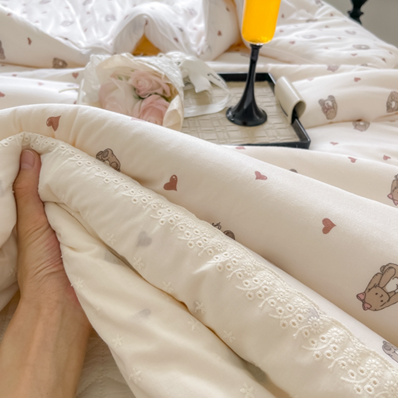 商品名称:莱豫家纺 2024新款法式复古针织花边夏被春秋被 爱心兔