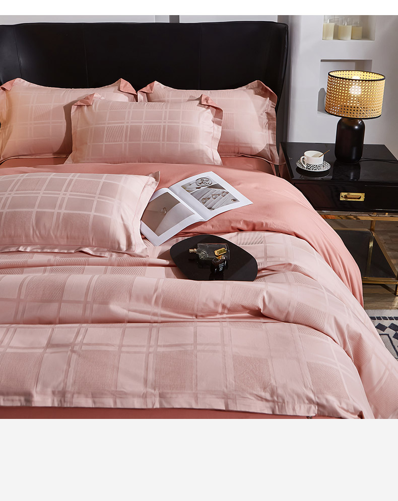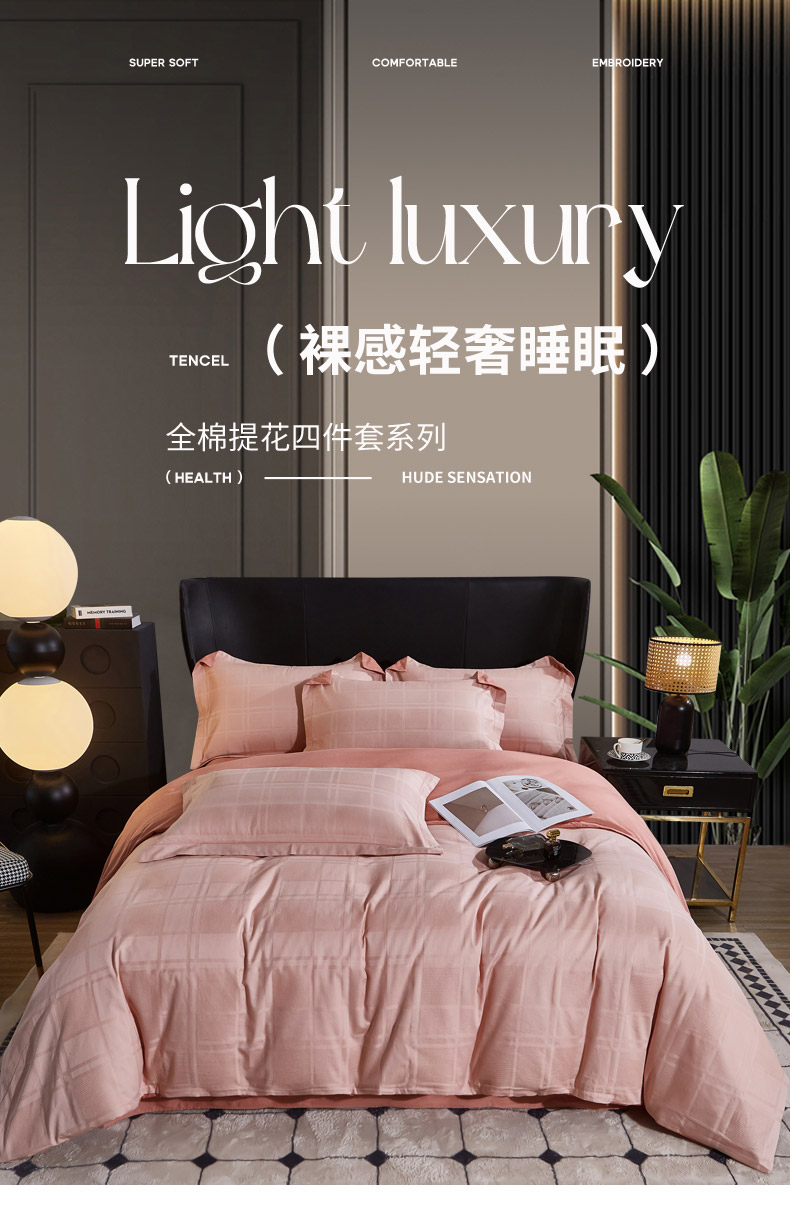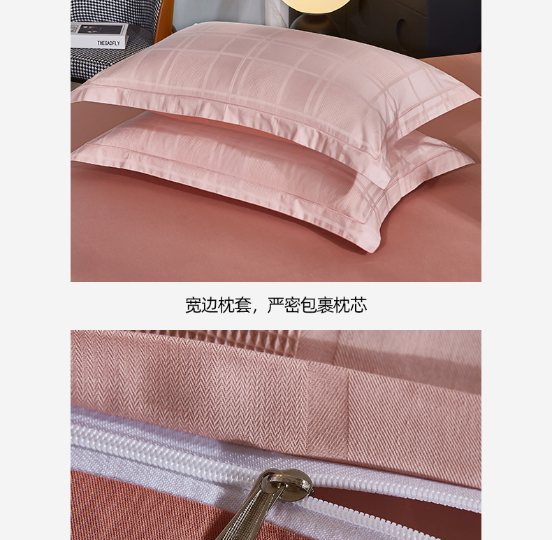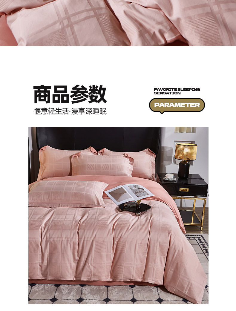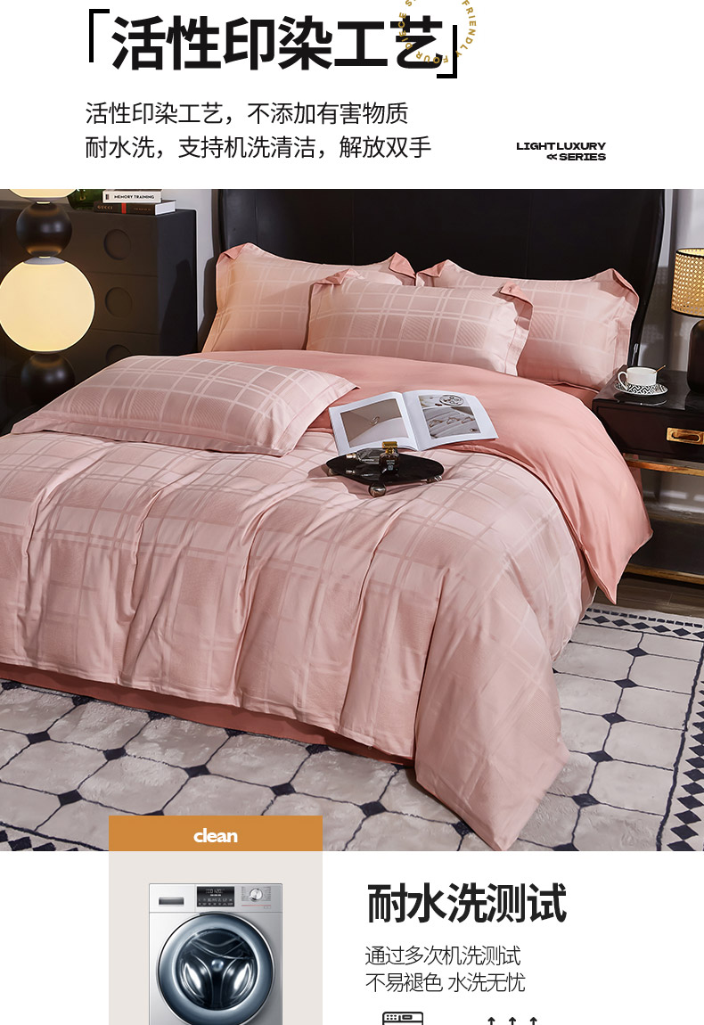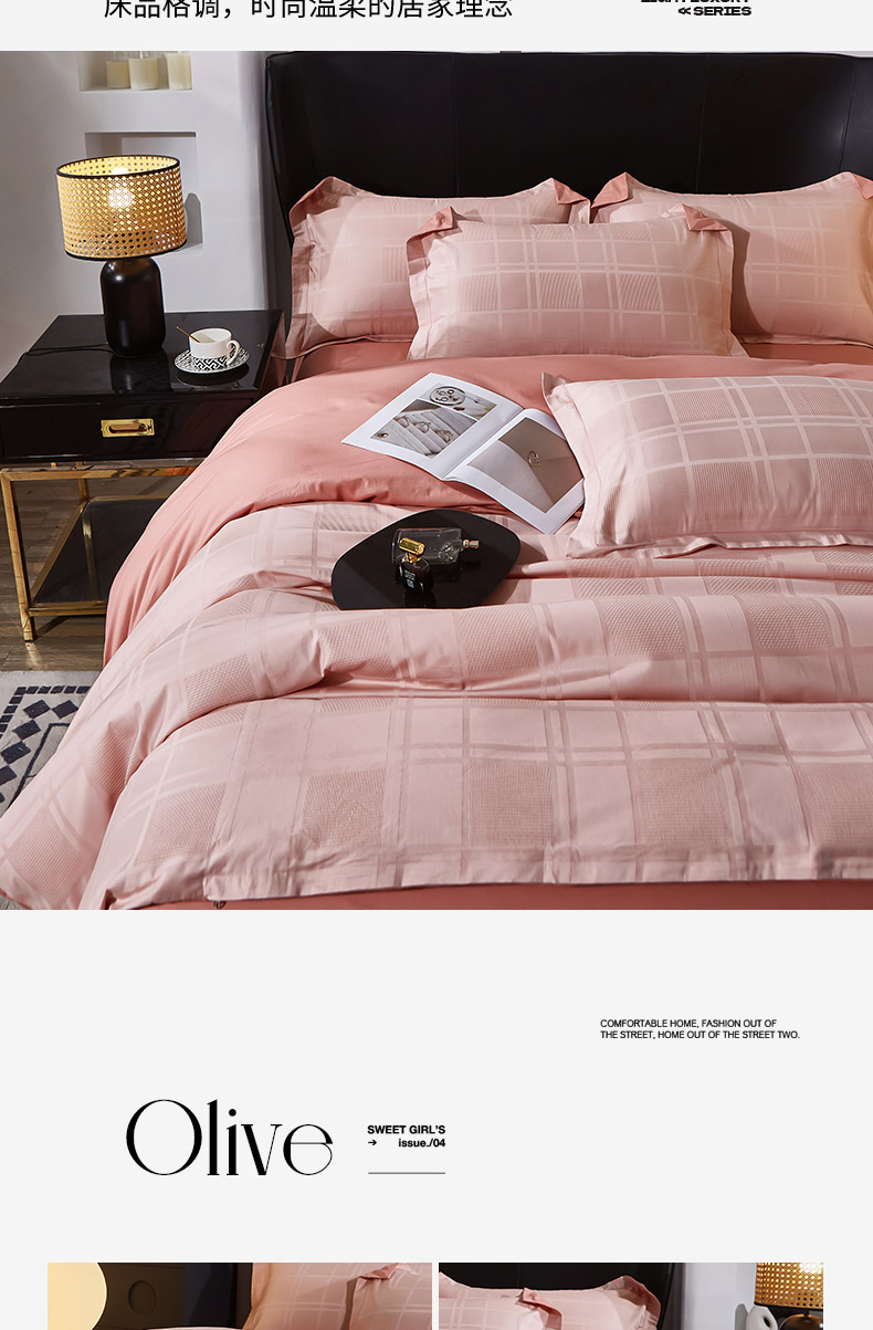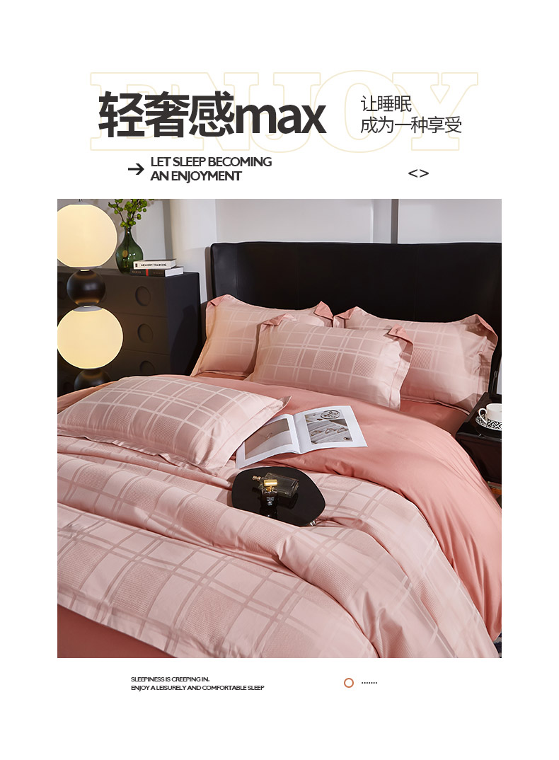 商品名称:雲归梦 2024新款全棉提花活性高支密轻奢四件套 大方格-樱花粉