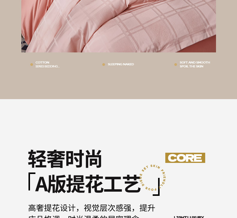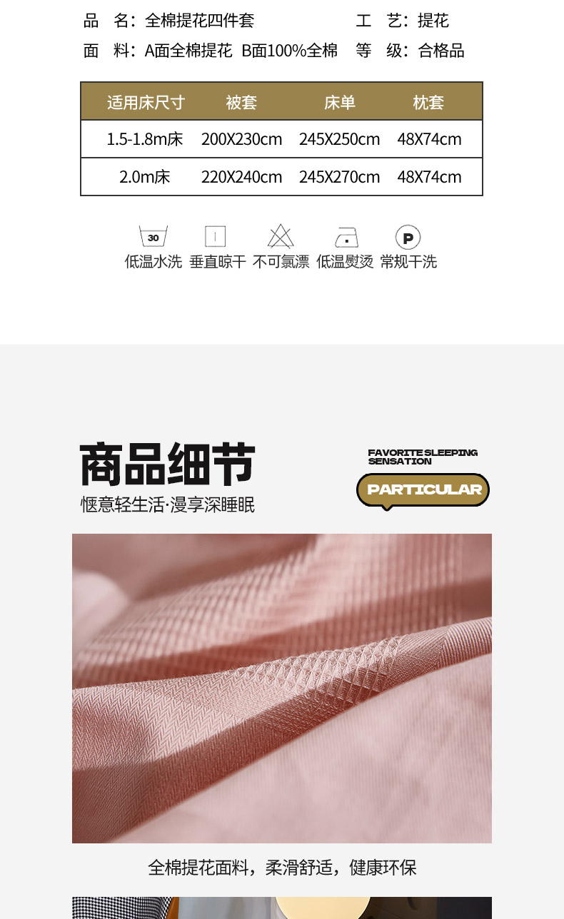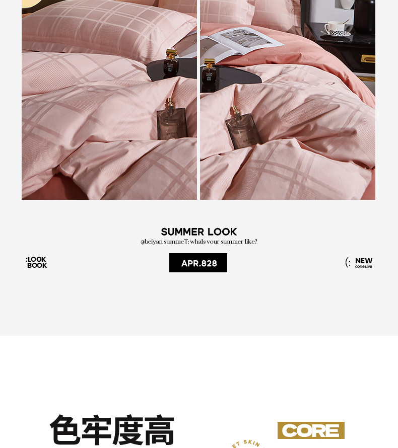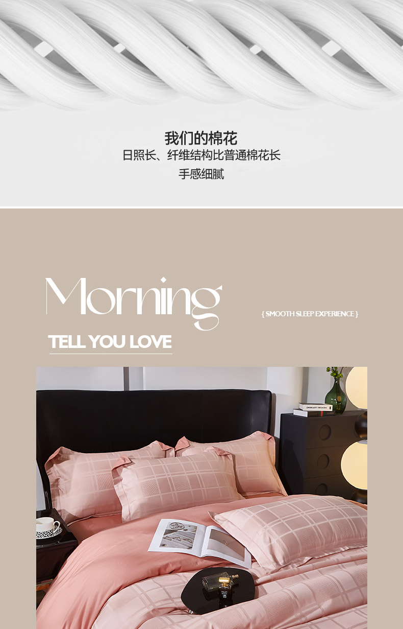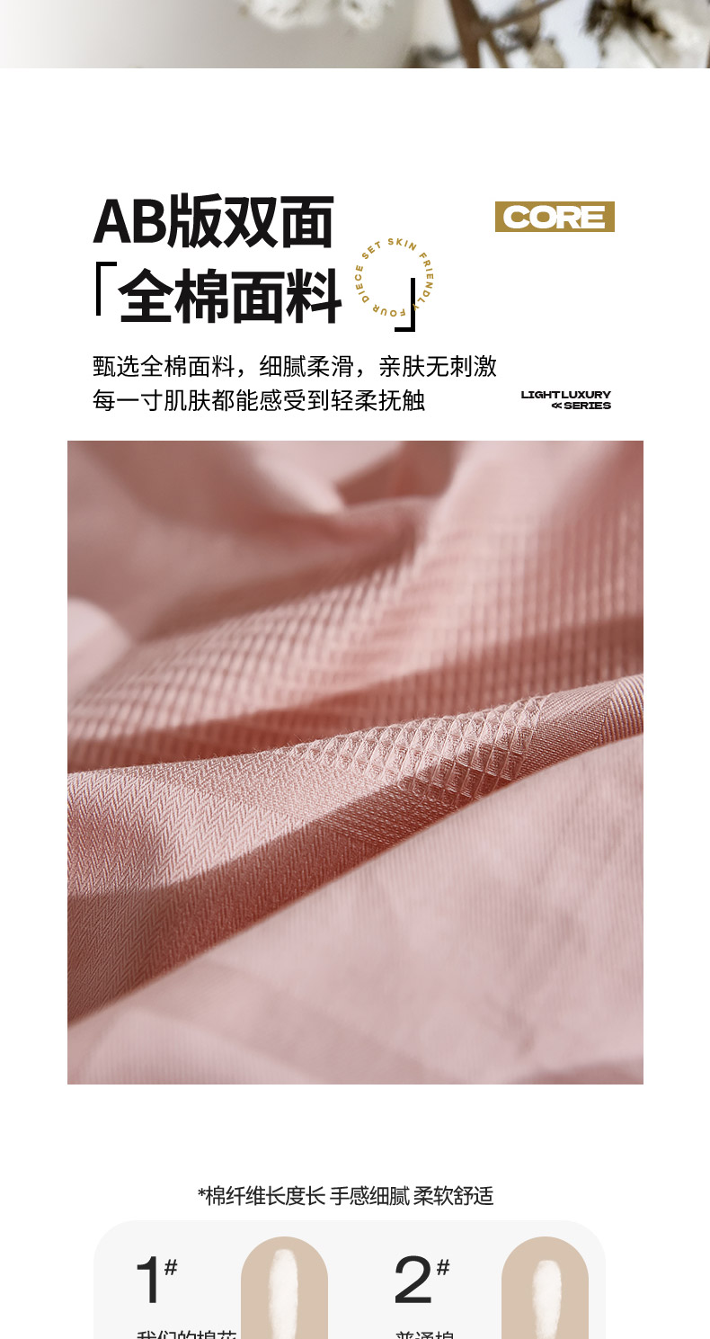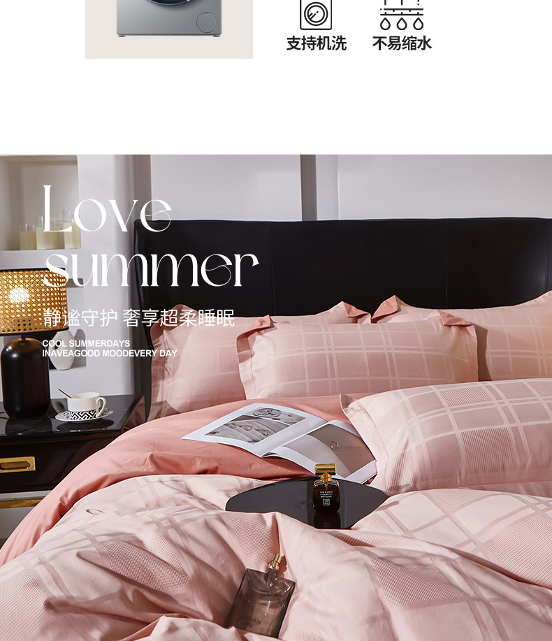 商品名称:雲归梦 2024新款全棉提花活性高支密轻奢四件套 大方格-樱花粉
