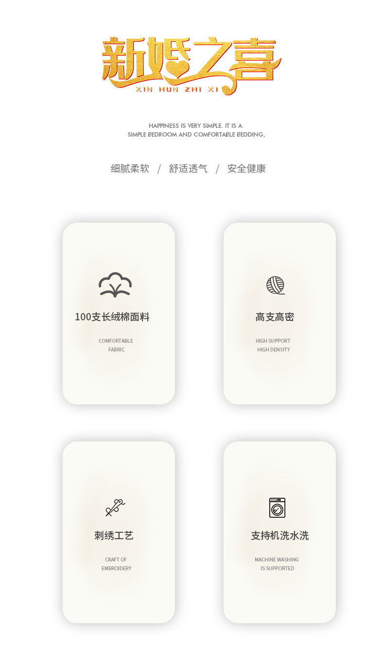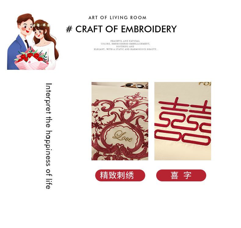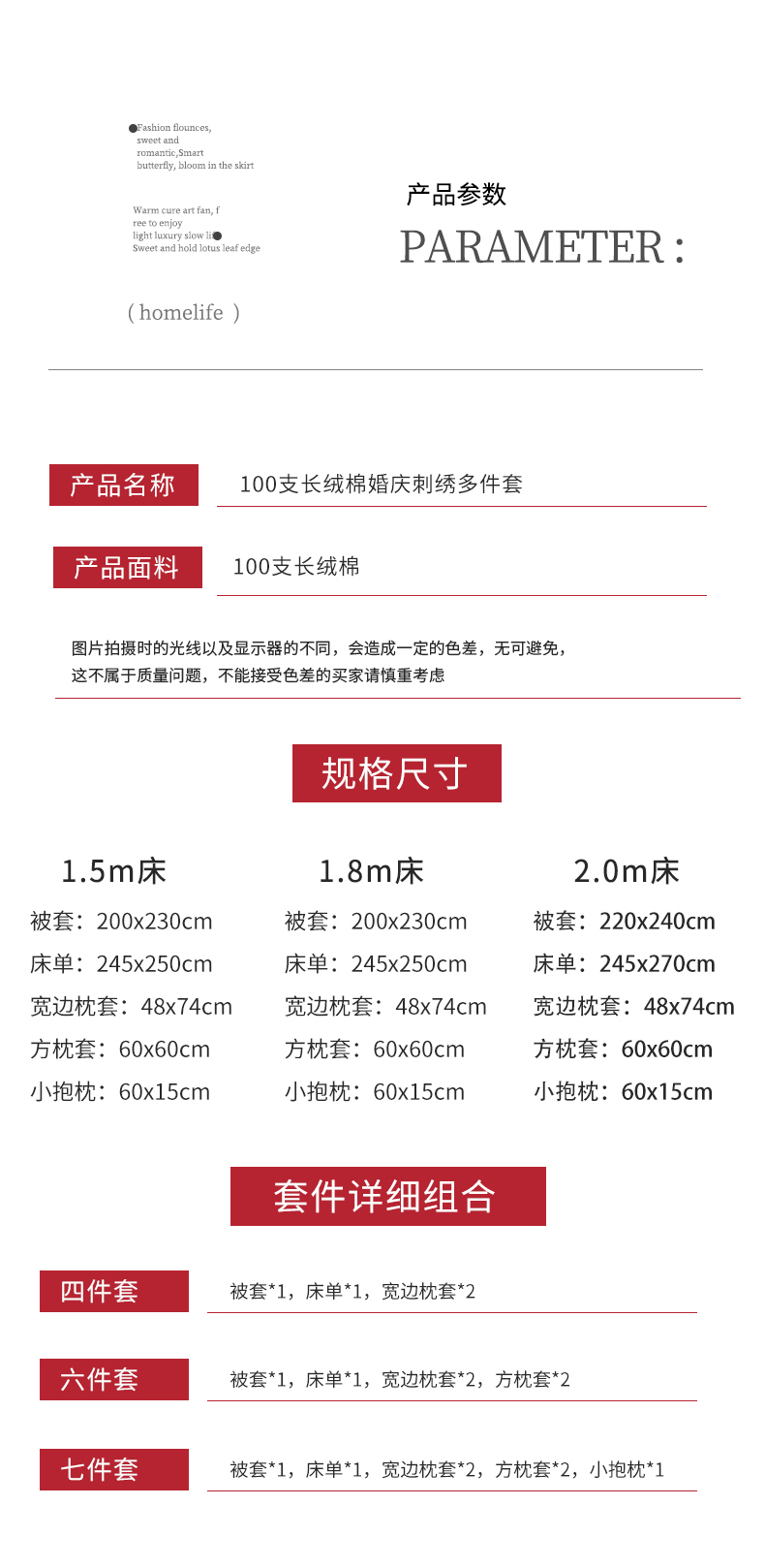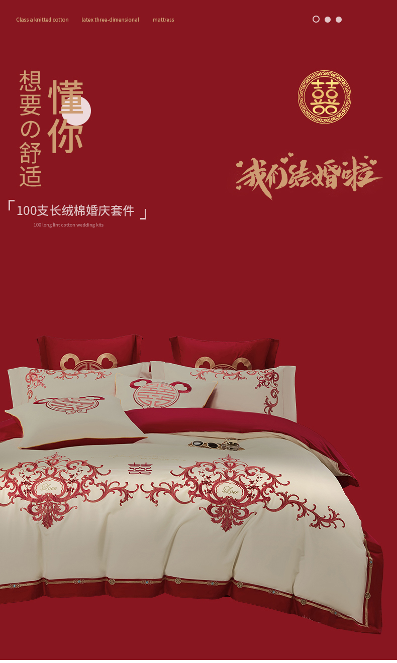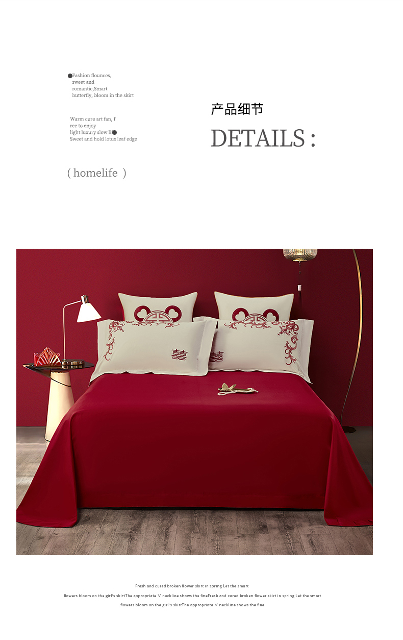 当前位置: 91家纺网 > 商品网购 > 床品套件 > 四件套 > 婚庆四件套 > 玉雅家纺 2025新款100支长绒棉高档提花刺绣婚庆四件套 倾心