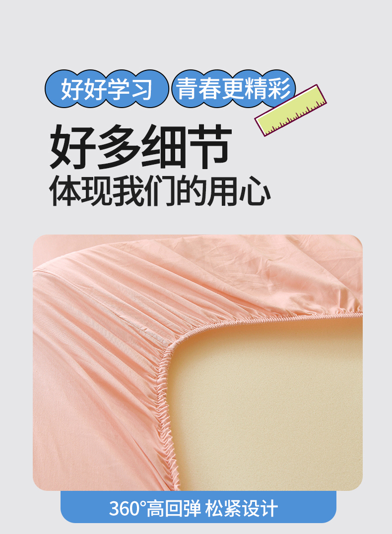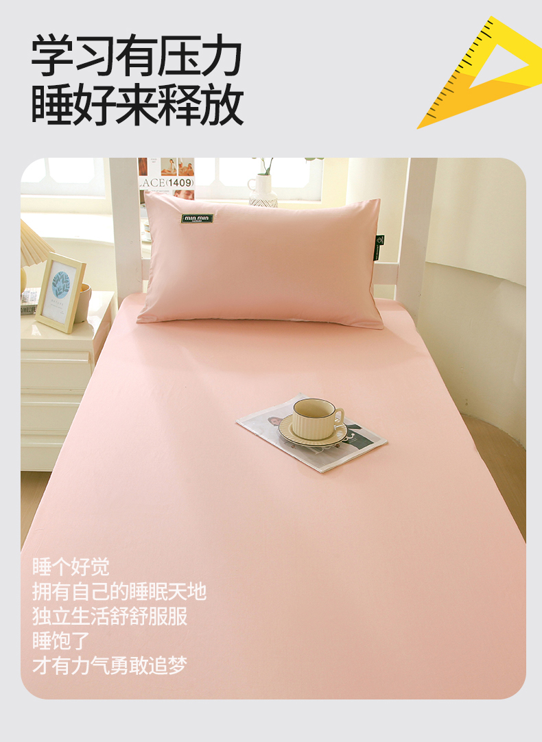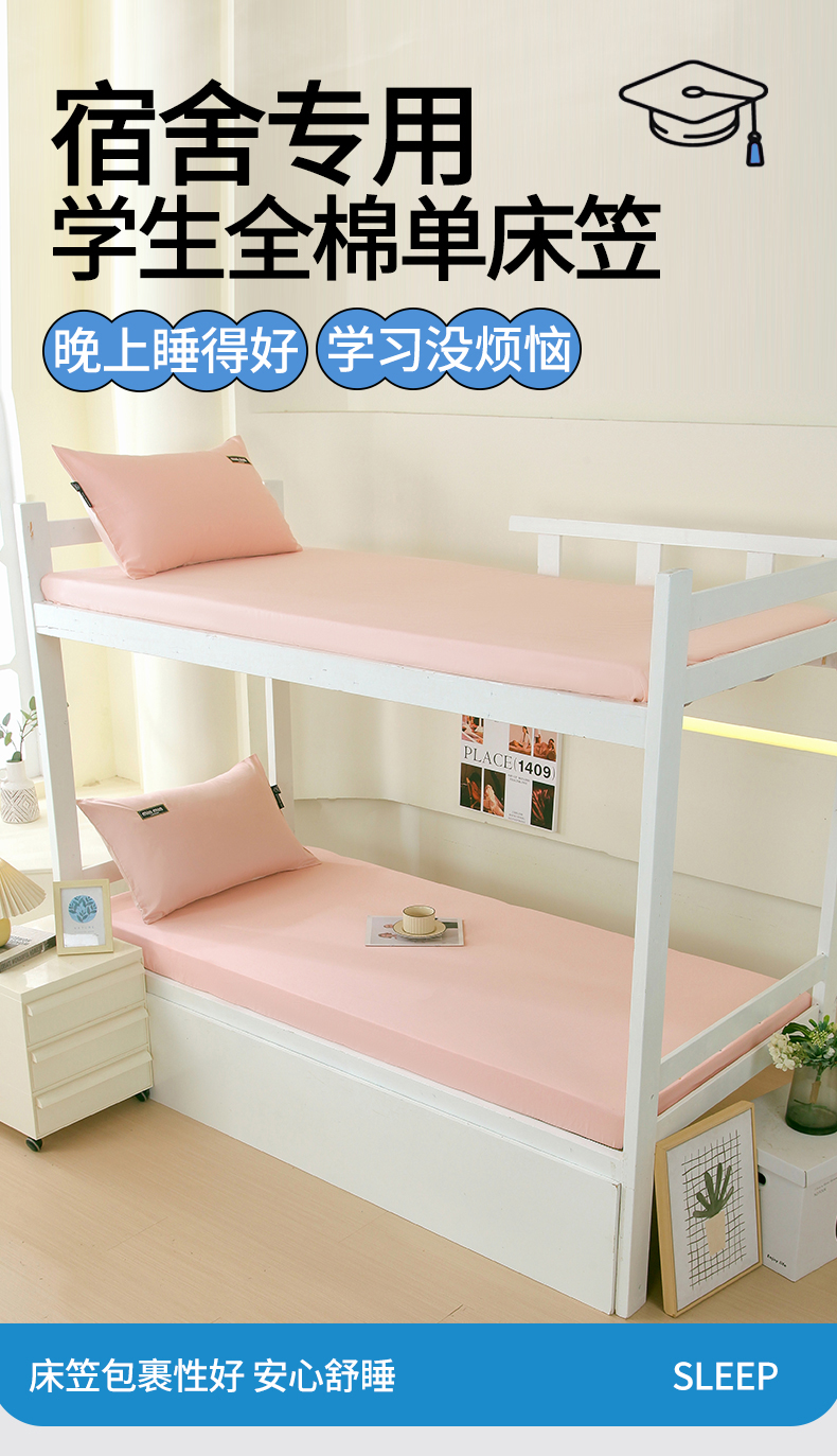 凯磊家纺 2024新款宿舍专用学生.13372系列单床笠 学生单床笠-露娜粉