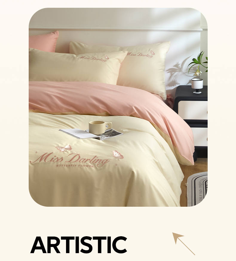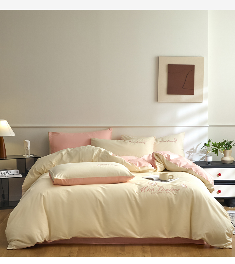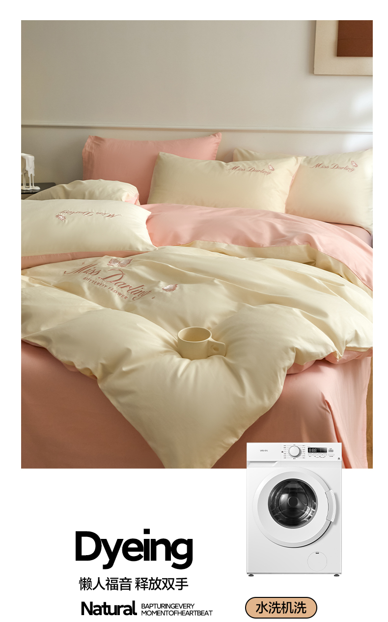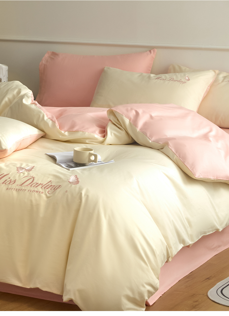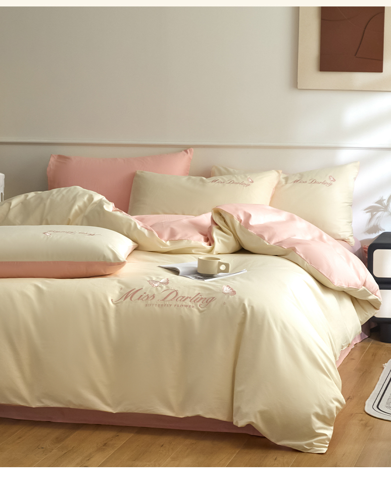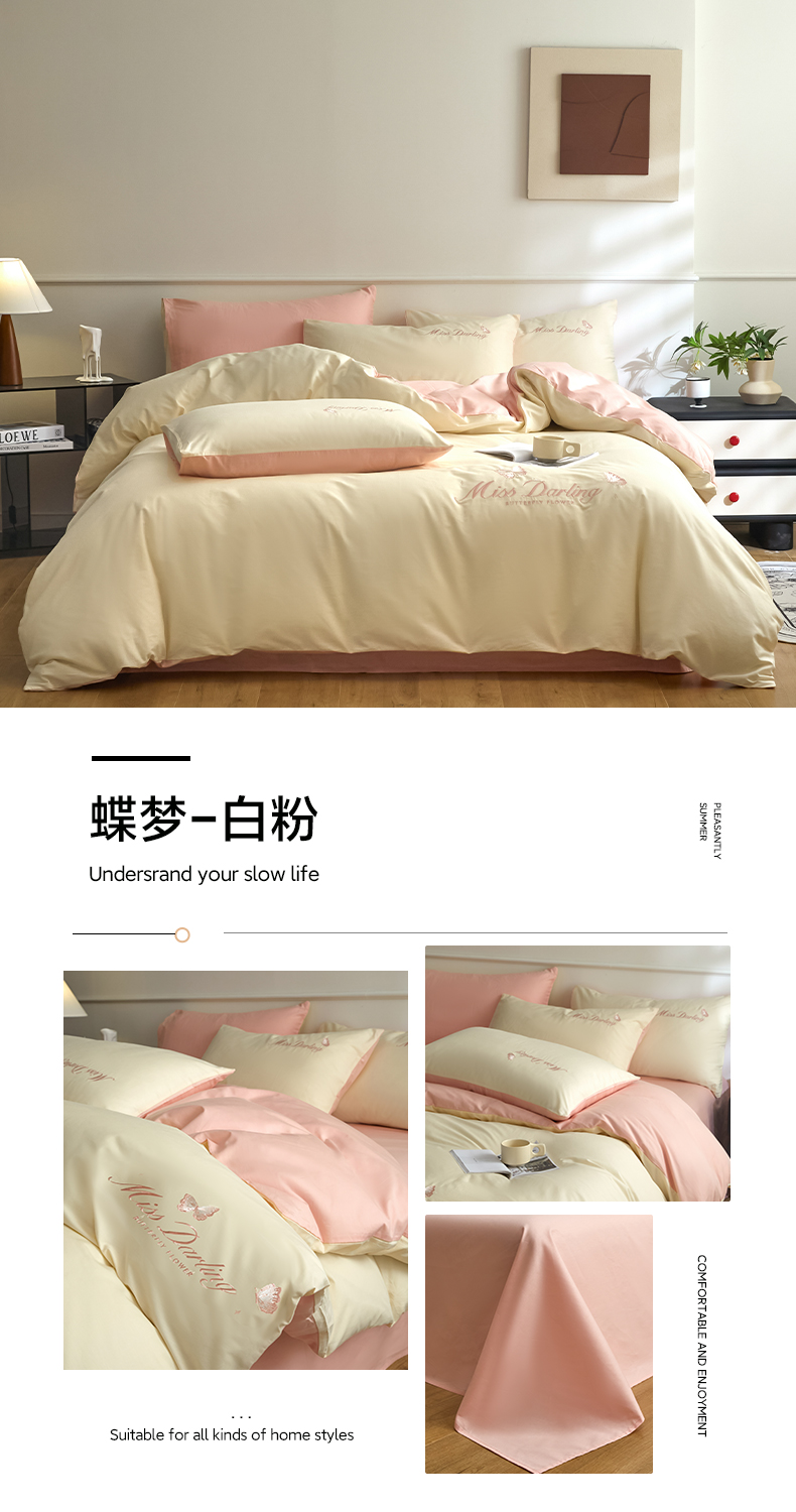 如一 2024新款全棉刺绣四件套学生三件套-蝶梦系列 蝶梦-白粉