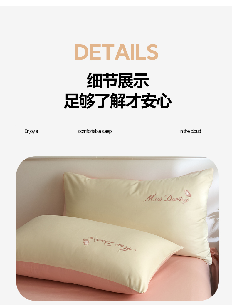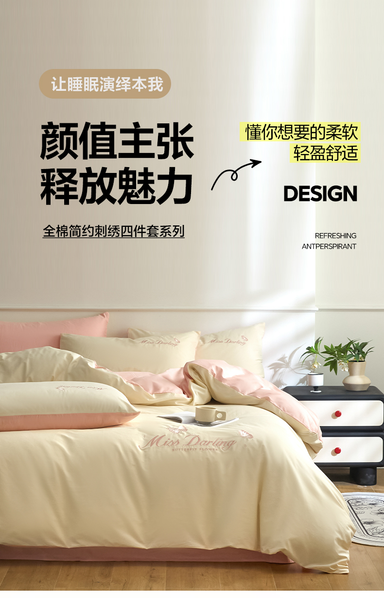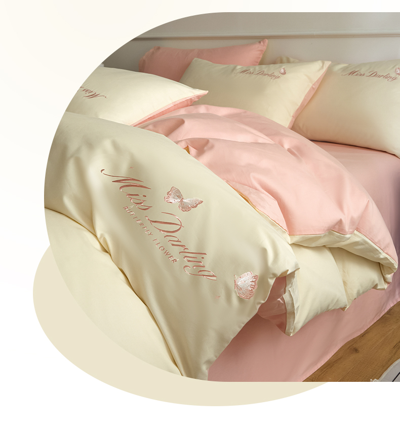 商品名称:如一 2024新款全棉刺绣四件套学生三件套-蝶梦系列 蝶梦-白粉