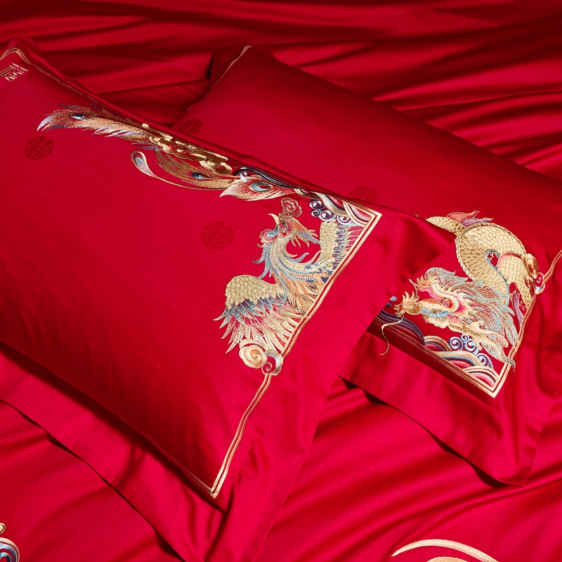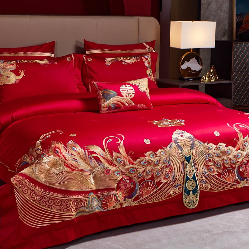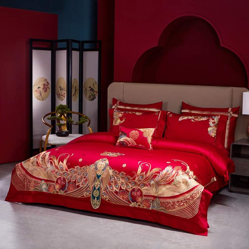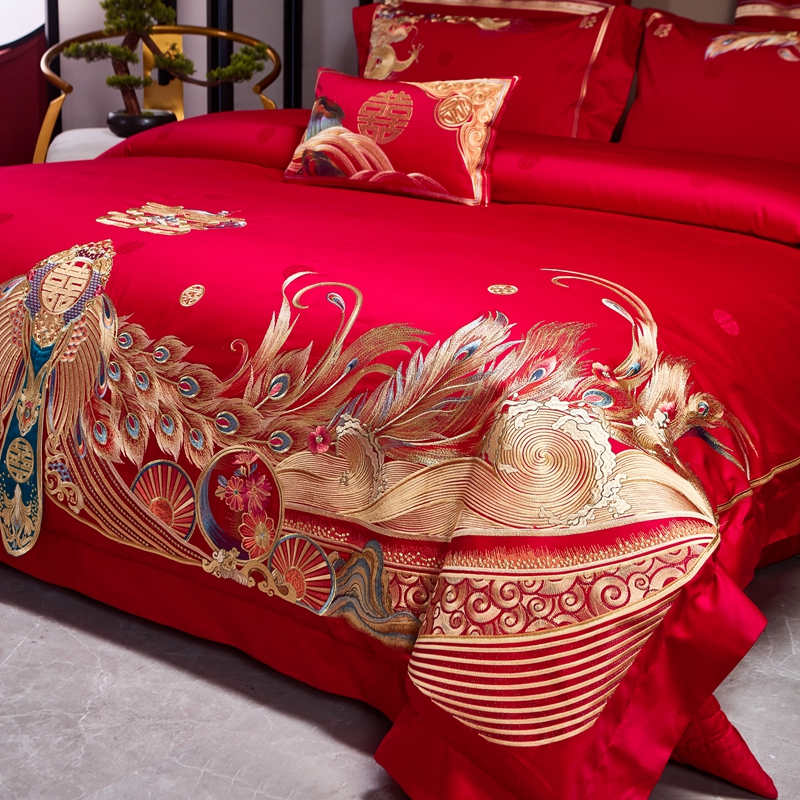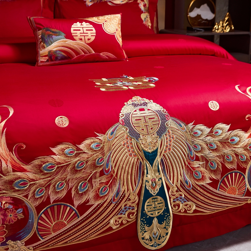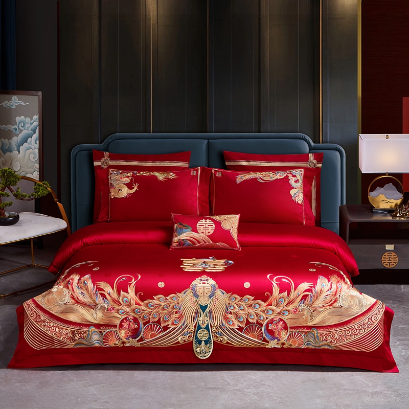 当前位置: 91家纺网 > 商品网购 > 床品套件 > 四件套 > 婚庆四件套 > 美娘阁 2025新款长绒棉贡缎提花款新中式古典韵味精美刺绣婚庆四件套多件套 盛世祥瑞
