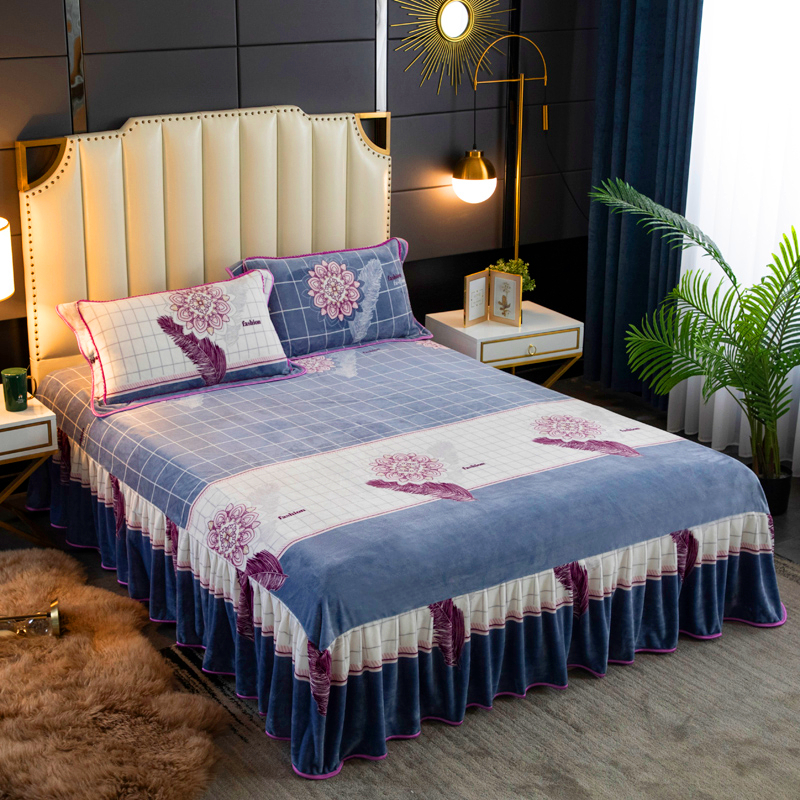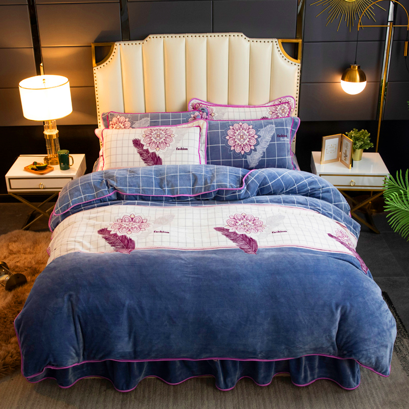 代芙家纺 7斤重牛奶绒金貂四件套抗静电法莱绒珊瑚绒床裙 似水流年