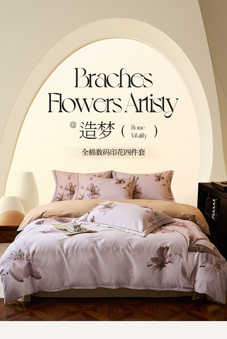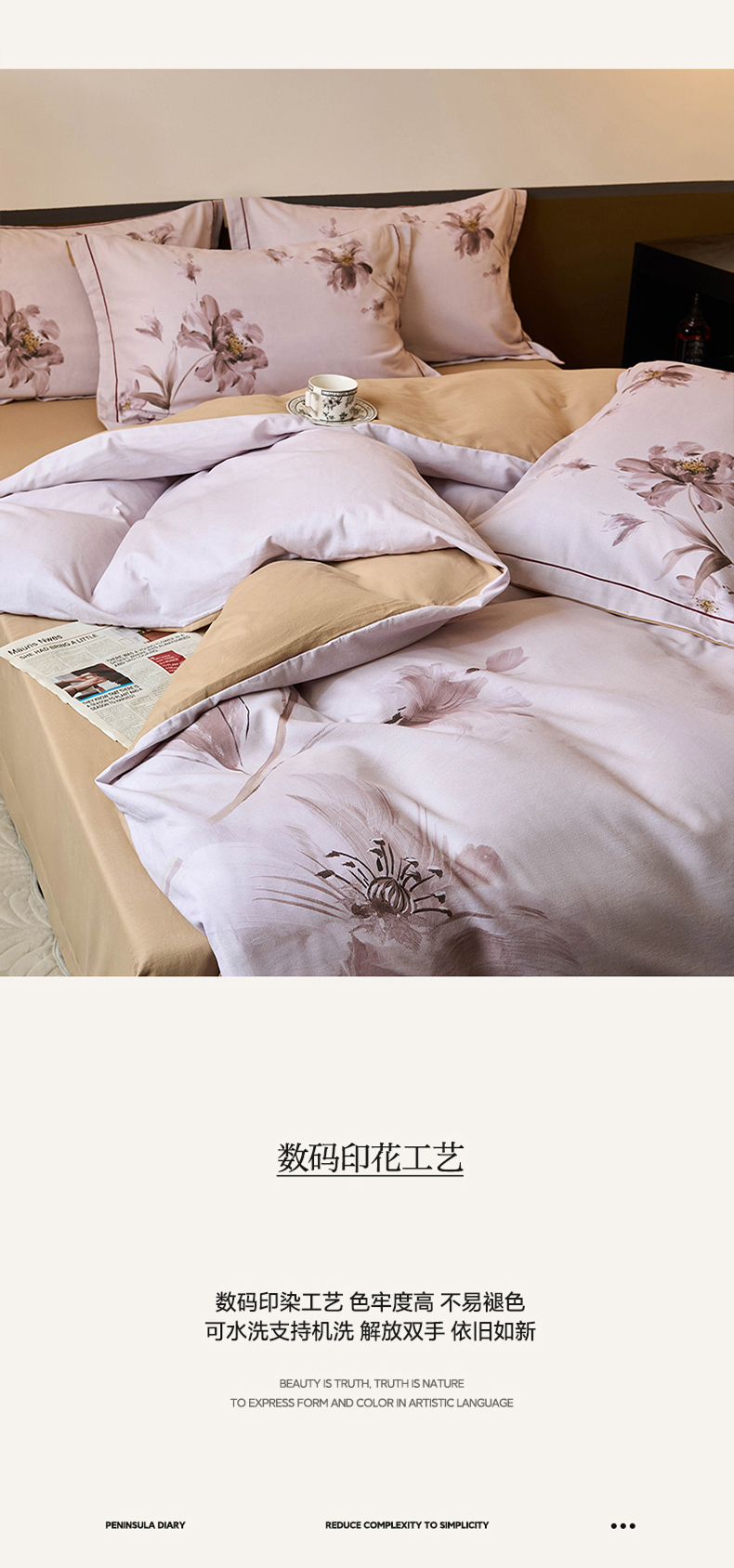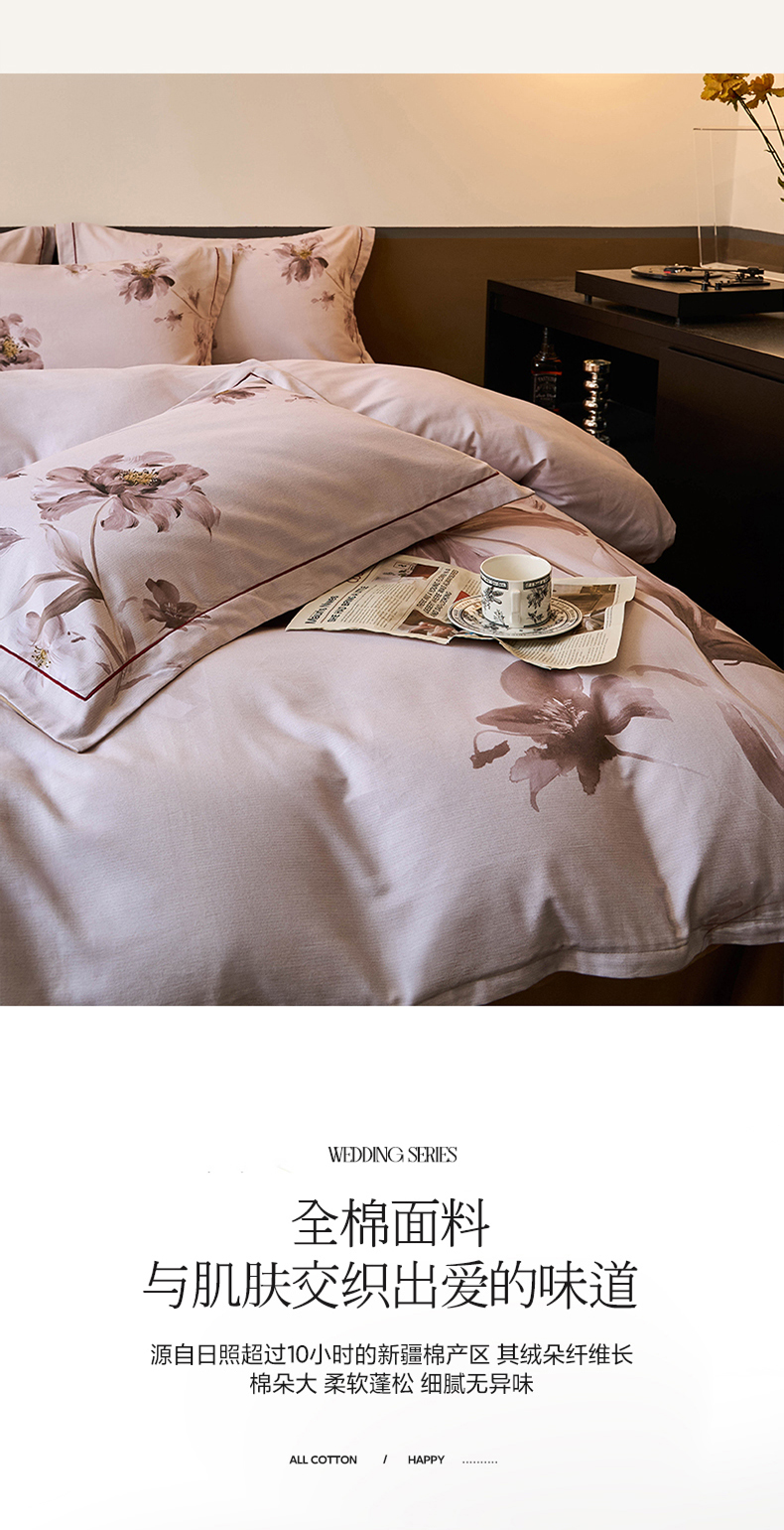 商品名称:宜家坊 2024新款全棉数码印花加厚磨毛【提供买家秀】 暮橙