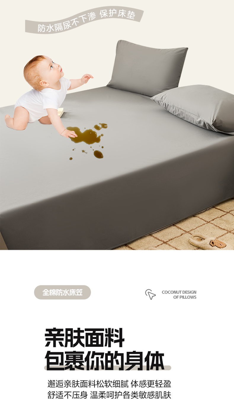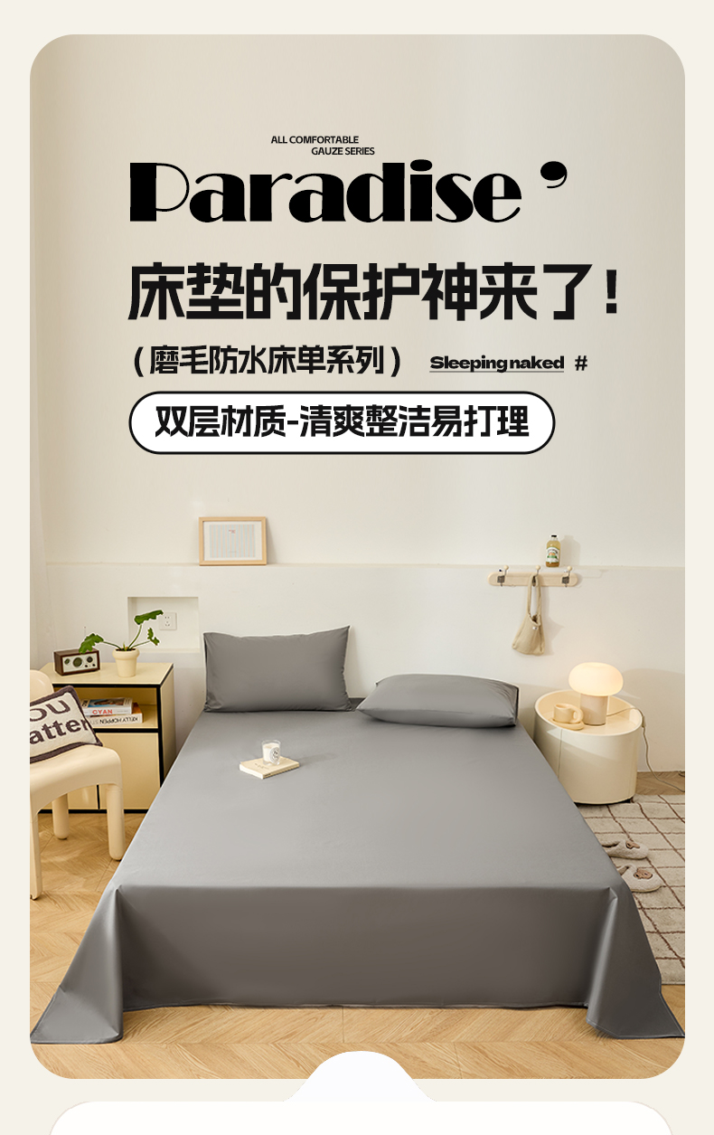 (总)火星时代网供 2025新款跨境防水床笠罩外贸TPU隔尿床单直播床笠希音直播专供可定制,纯洁白,绅士灰