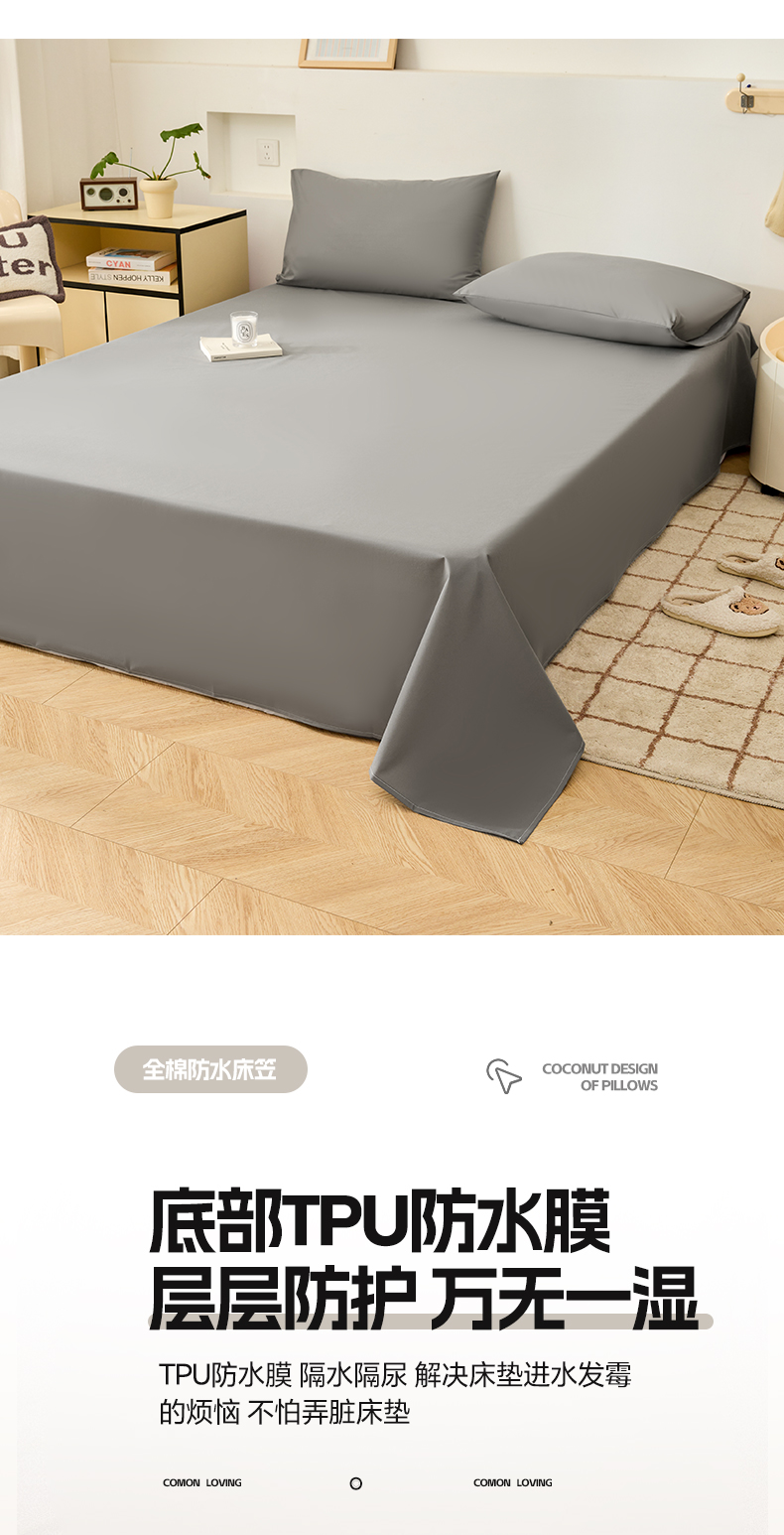 火星时代网供 2024新款跨境外贸TPU防水床单单件儿童老人防失禁隔尿垫纯白色床罩套可水洗机洗 绅士灰