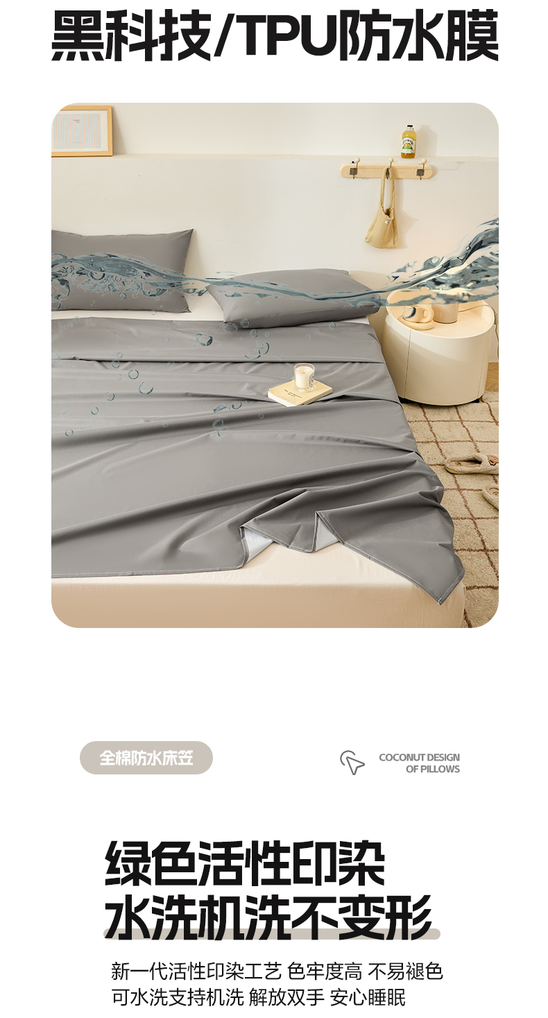 商品名称:火星时代网供 2024新款跨境外贸TPU防水床单单件儿童老人防失禁隔尿垫纯白色床罩套可水洗机洗 绅士灰