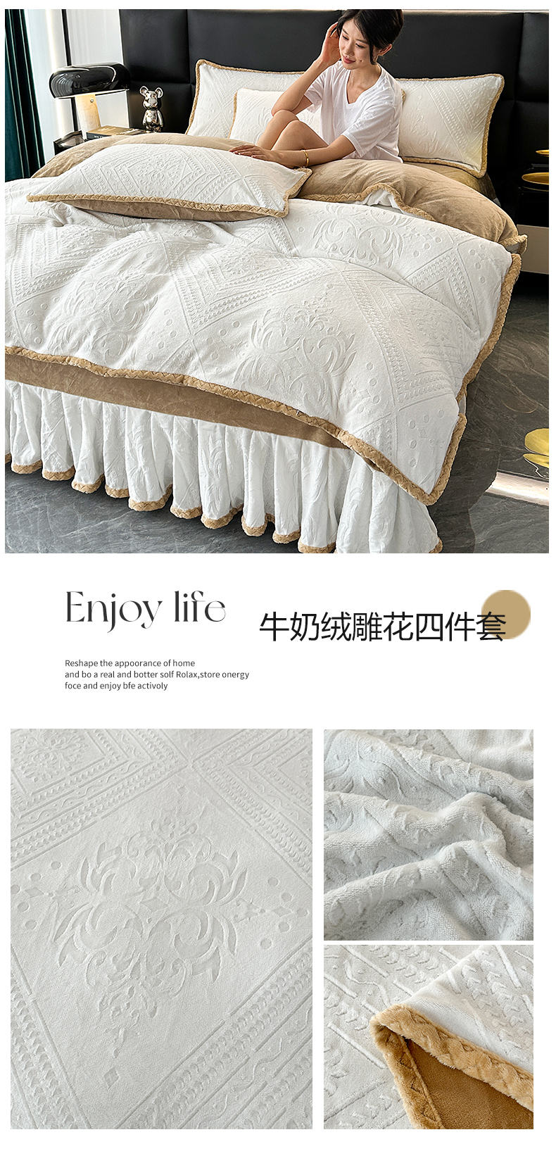 (总)望淮家纺 2025新款8D雕花牛奶绒四件套,欧式情怀-经典灰,欧式情怀-翡翠绿,欧式情怀-卡其,欧式情怀-浪漫粉,欧式情怀-苹果绿,欧式情怀-烟灰,欧式情怀-珍珠白,挚爱-翡翠绿,挚爱-经典灰,挚爱-卡其,挚爱-浪漫粉,挚爱-苹果绿,挚爱-烟灰,挚爱-珍珠白