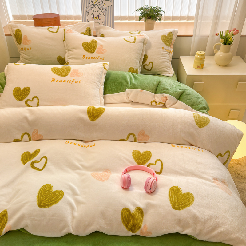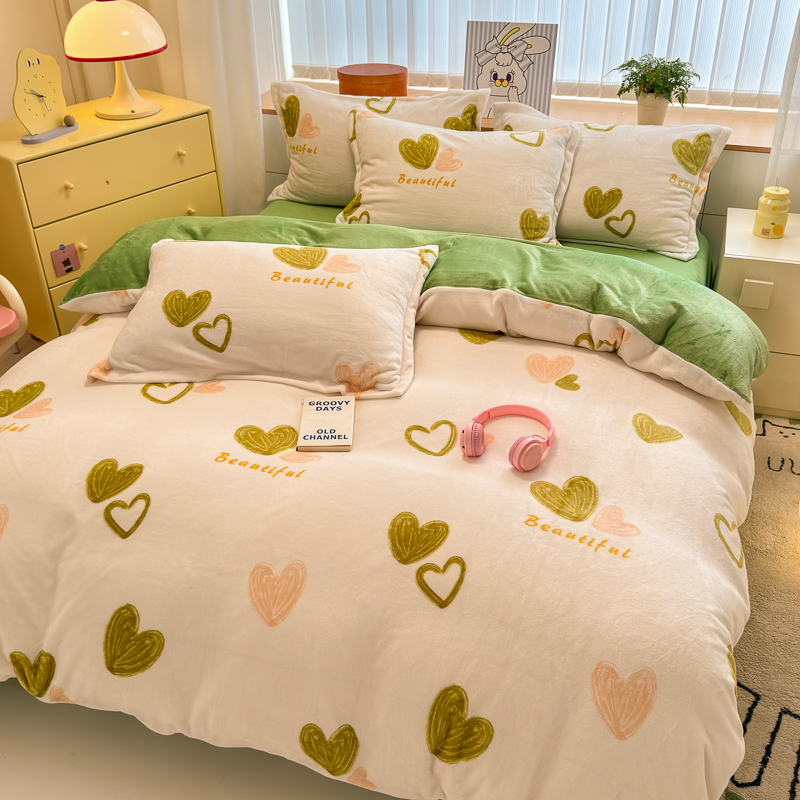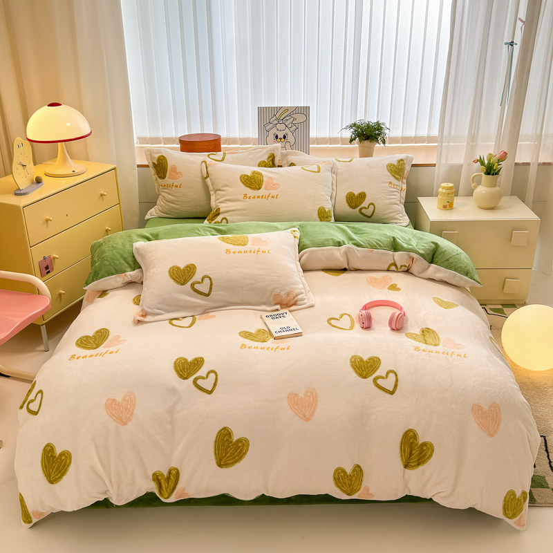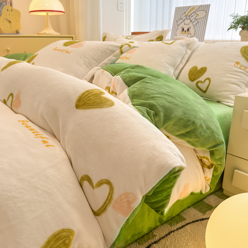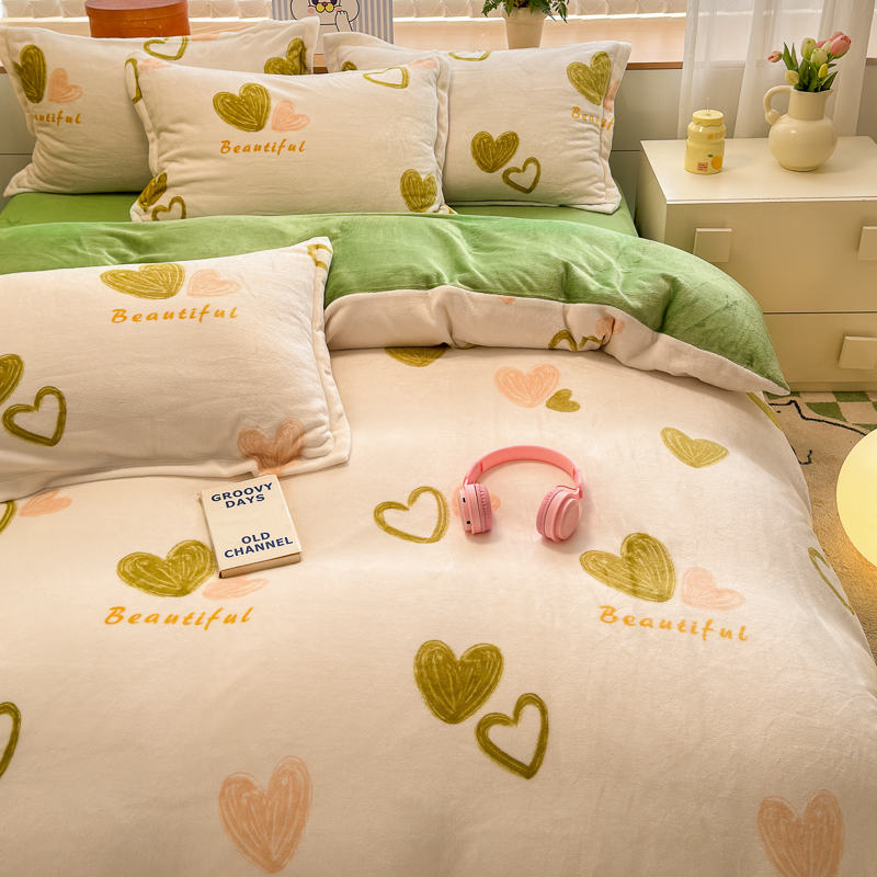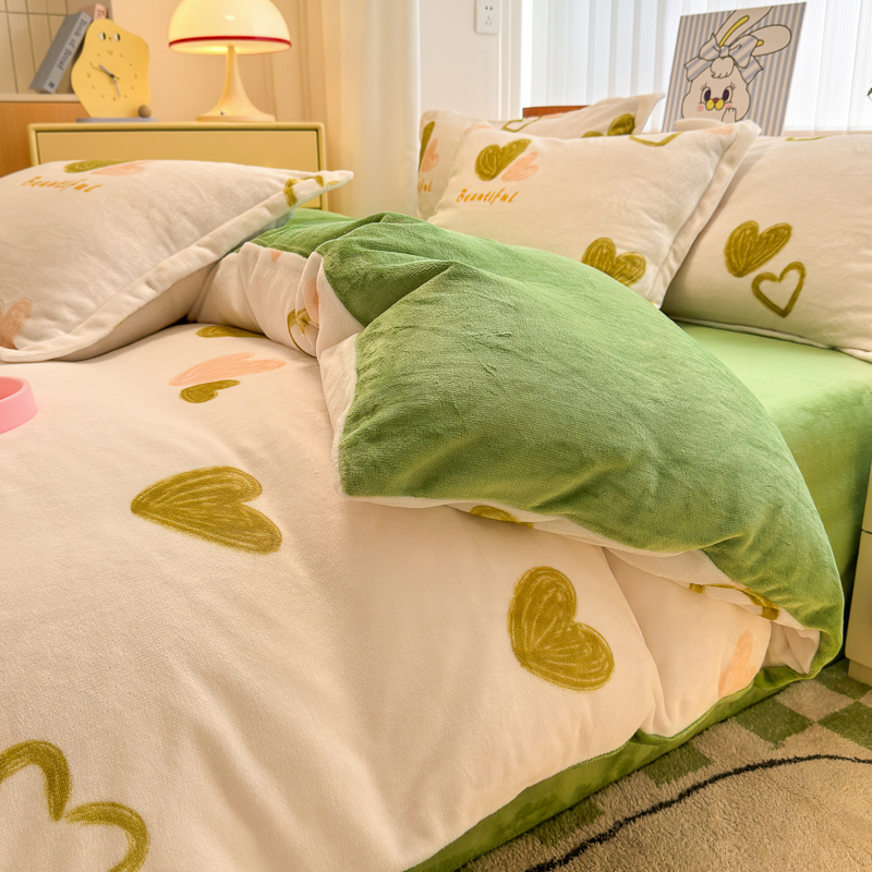 商品名称:德比尔斯 2025新款7斤重牛奶绒单被套 绿爱心