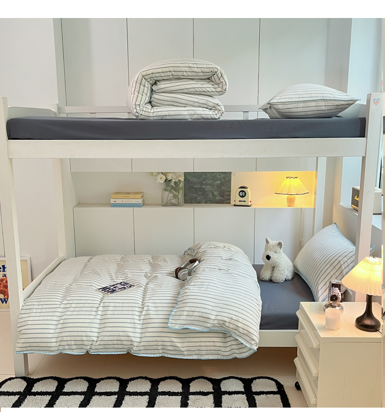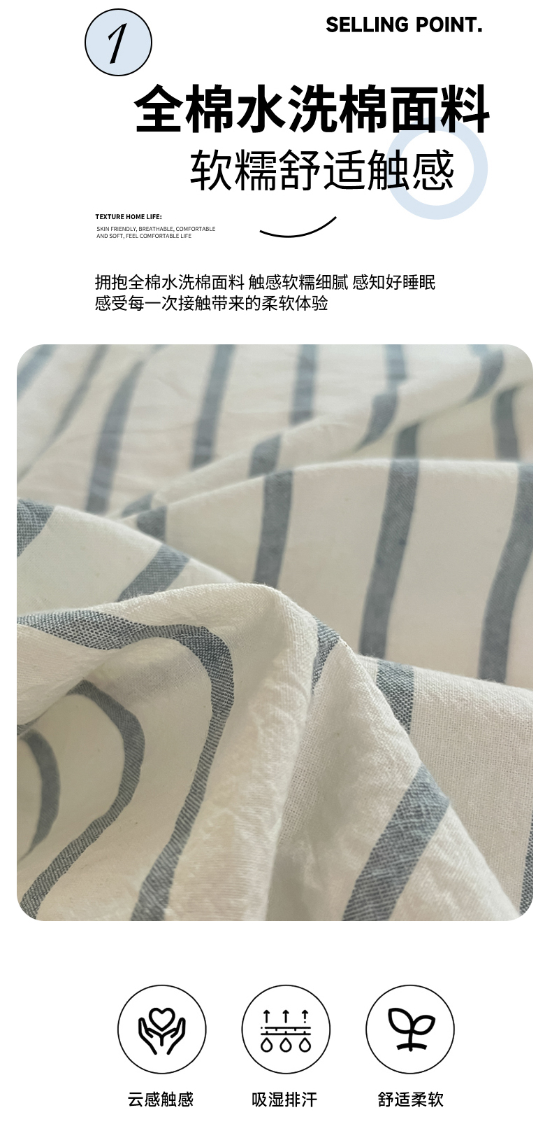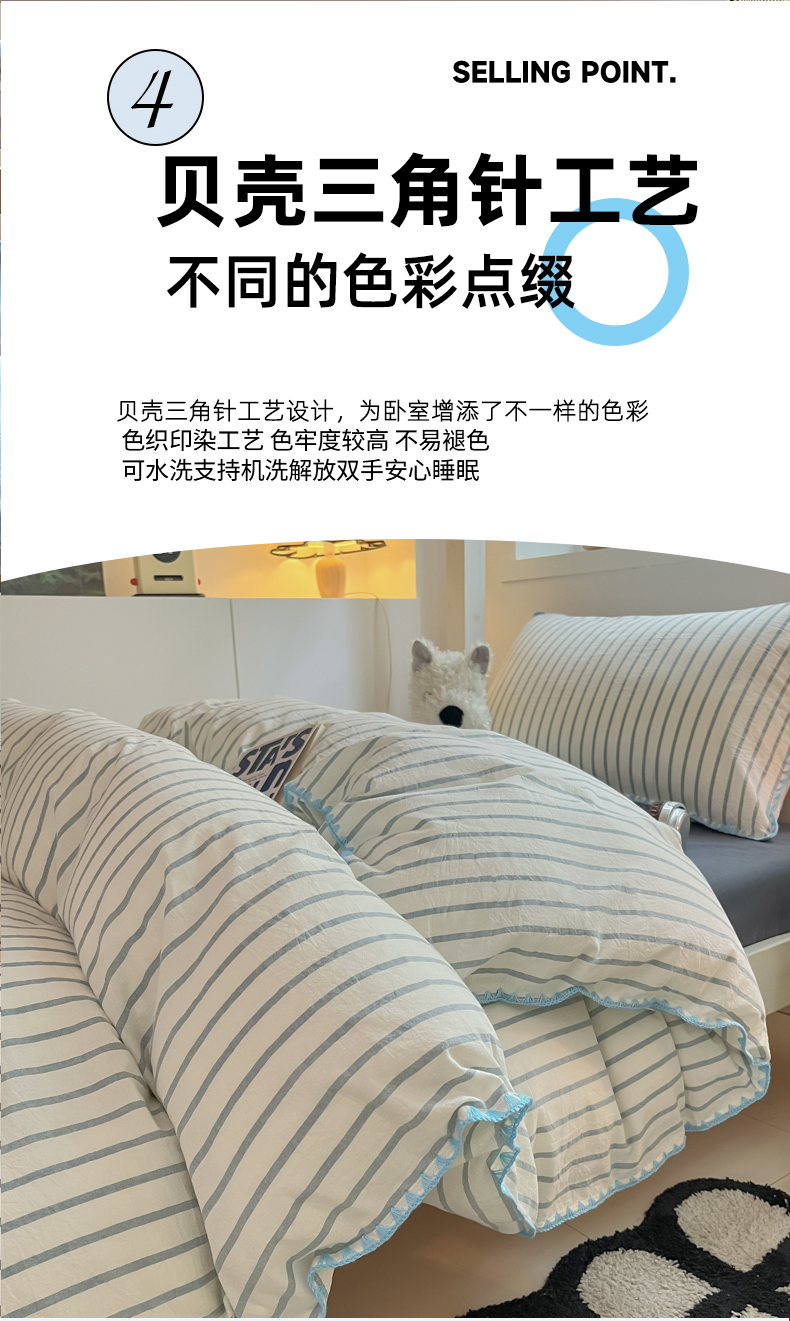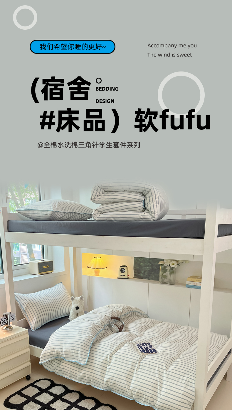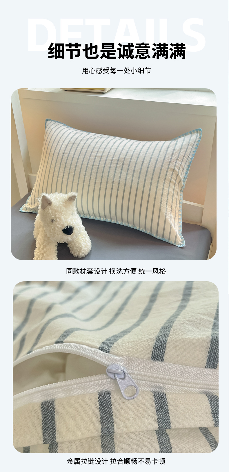 商品名称:吉象家纺 2025新款全棉水洗棉三角针学生三件套四件套 时光-浅蓝