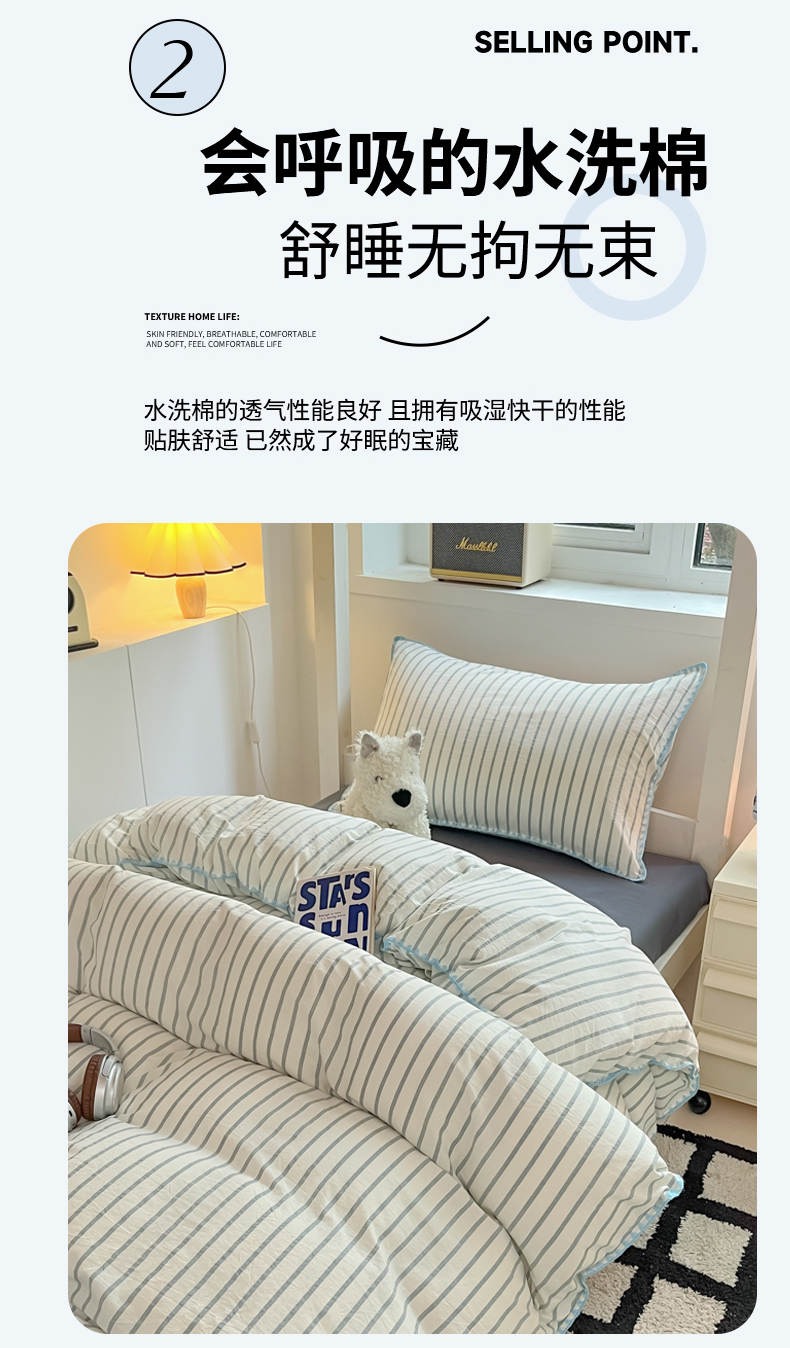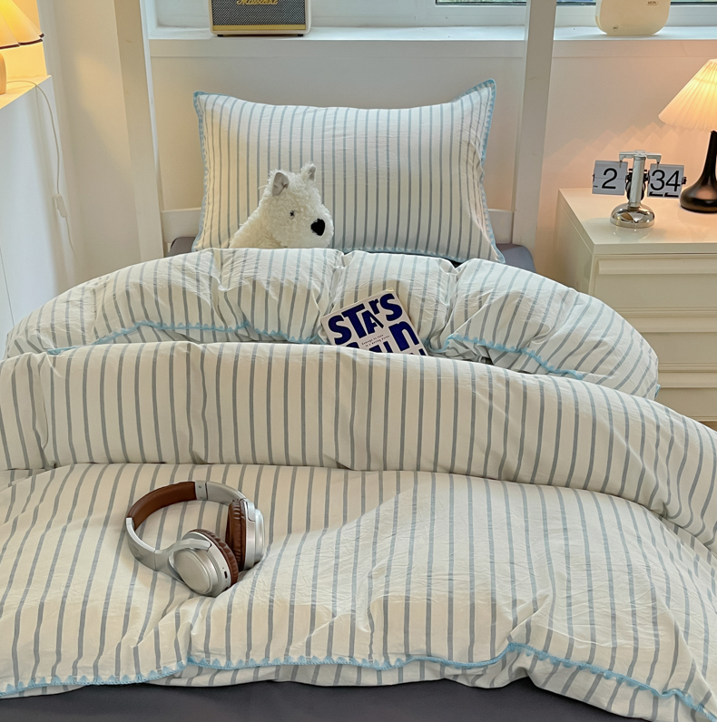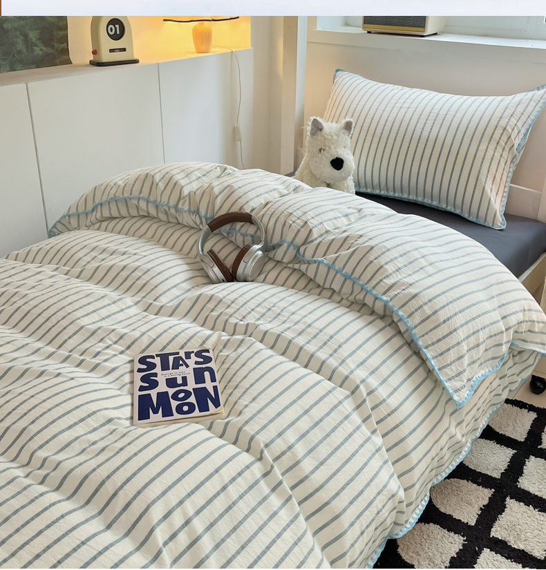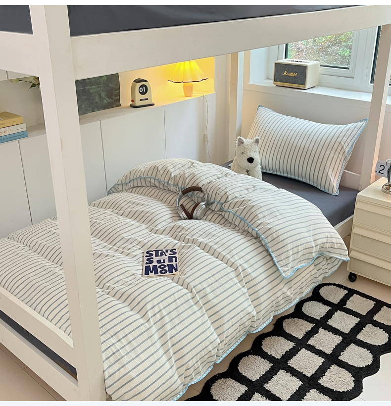 吉象家纺 2025新款全棉水洗棉三角针学生三件套四件套 时光-浅蓝