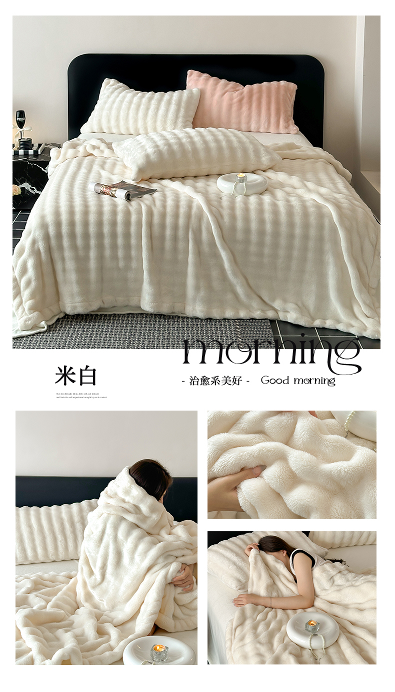 商品名称:桃喜 2024新款A类亲肤舒适秋冬兔毛毛毯 米白