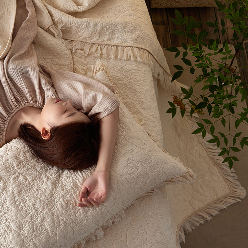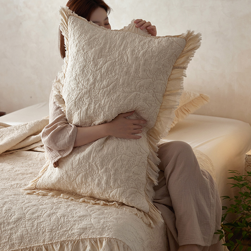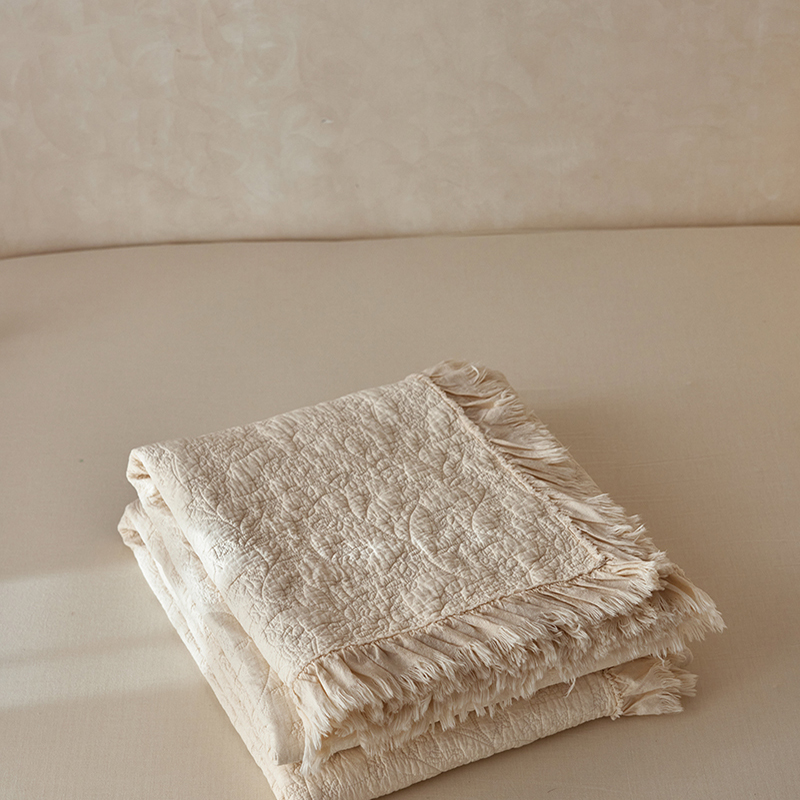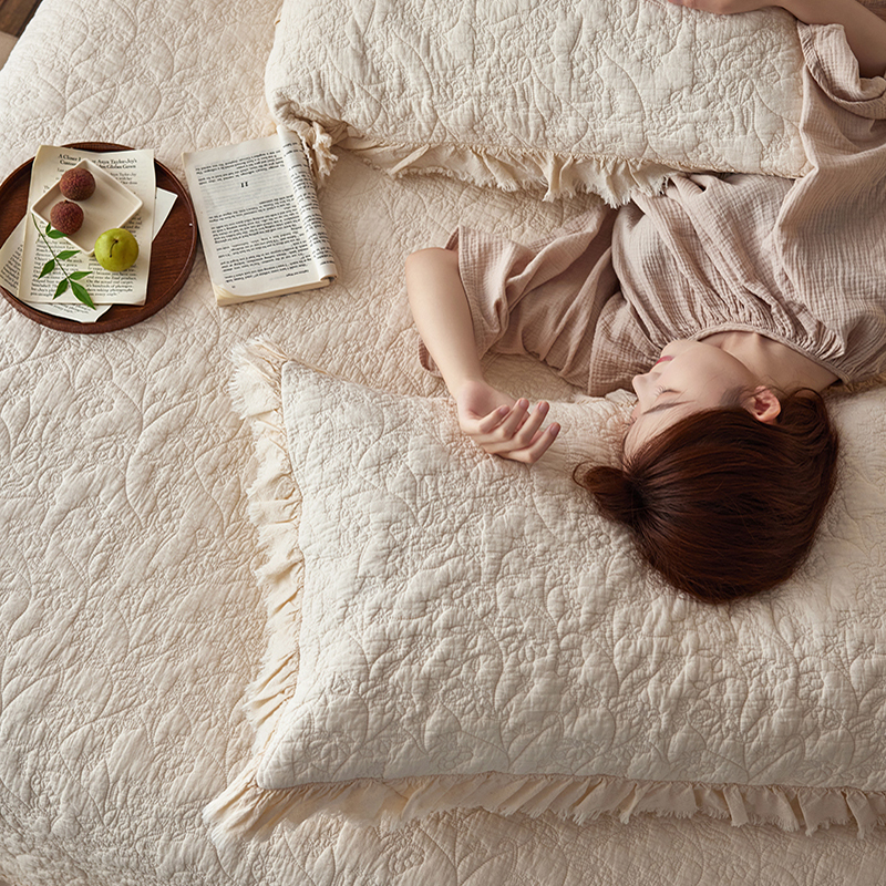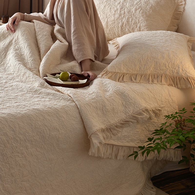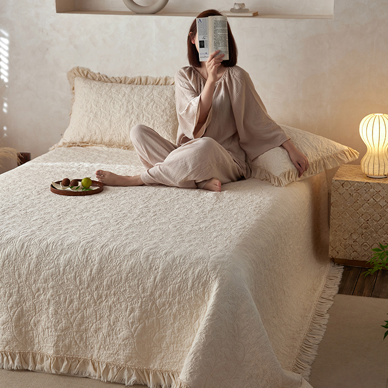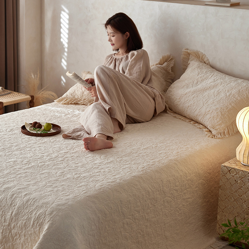 安莱生活 2024新品百分百全棉密道绗缝成品酵素洗多功能床盖三件套 楠枝