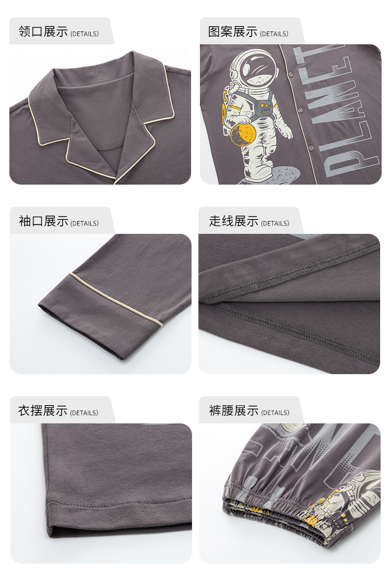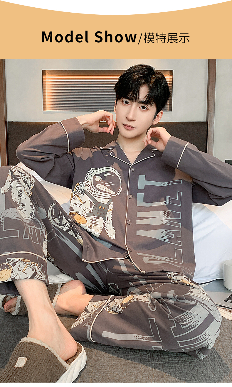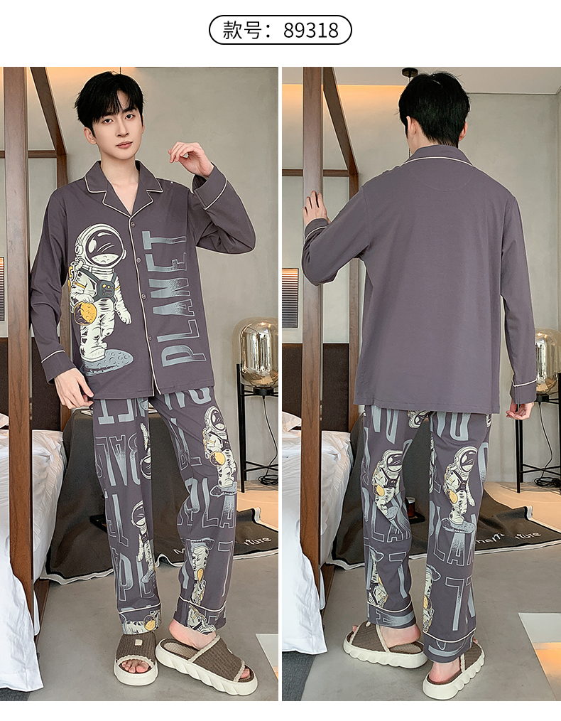 商品名称:春秋季新款纯棉休闲简约睡衣高级质量家居服夏季男士宽松舒适睡衣翻领 89318
