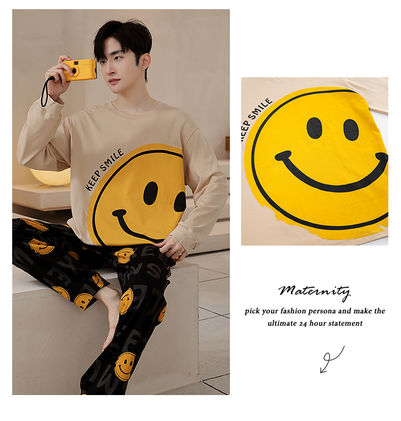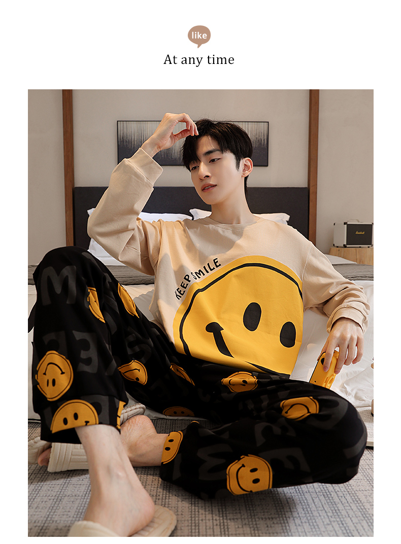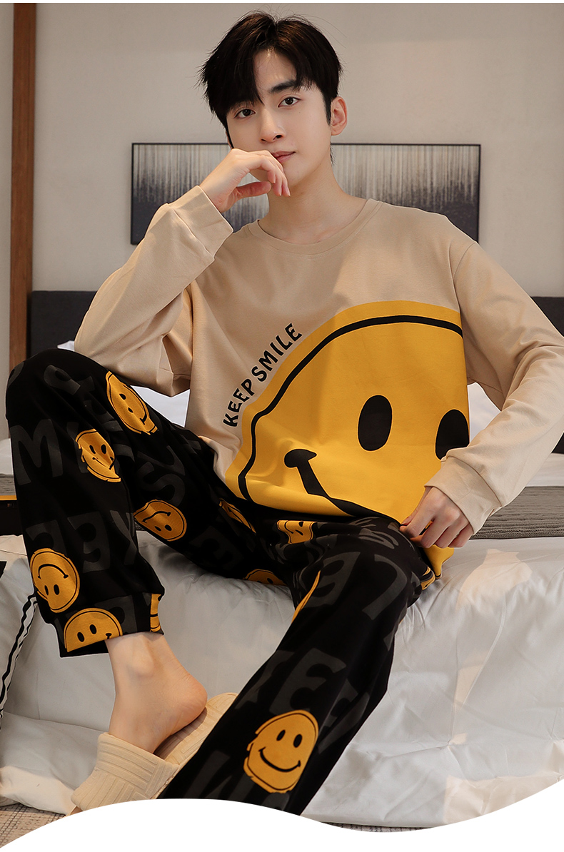 春秋季纯棉圆领睡衣男士卡通长袖家居服夏季青少年休闲可外穿套装 89287