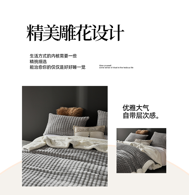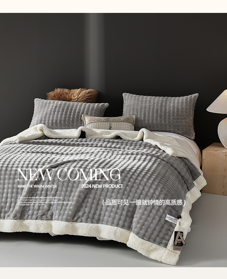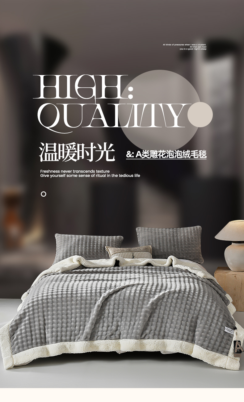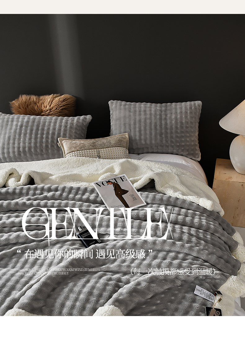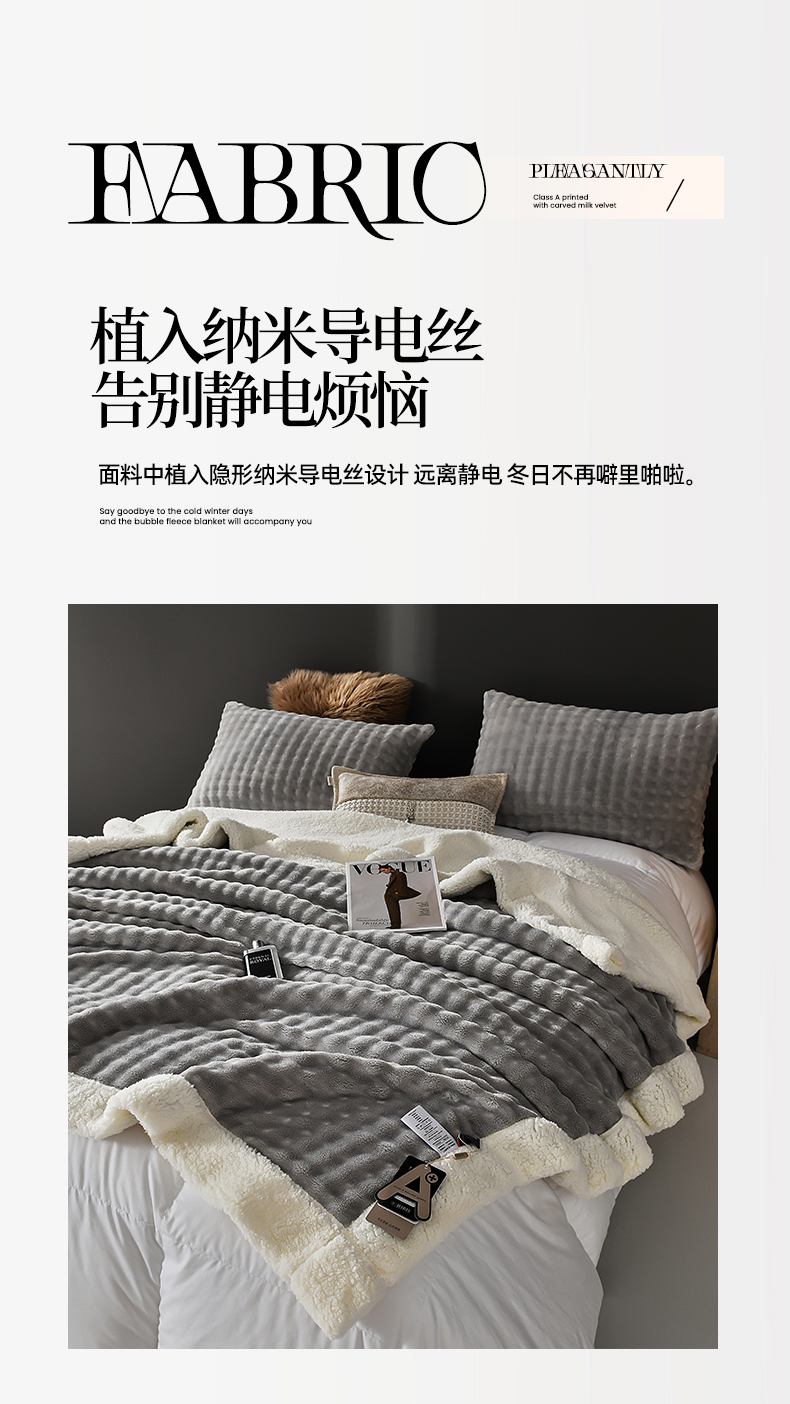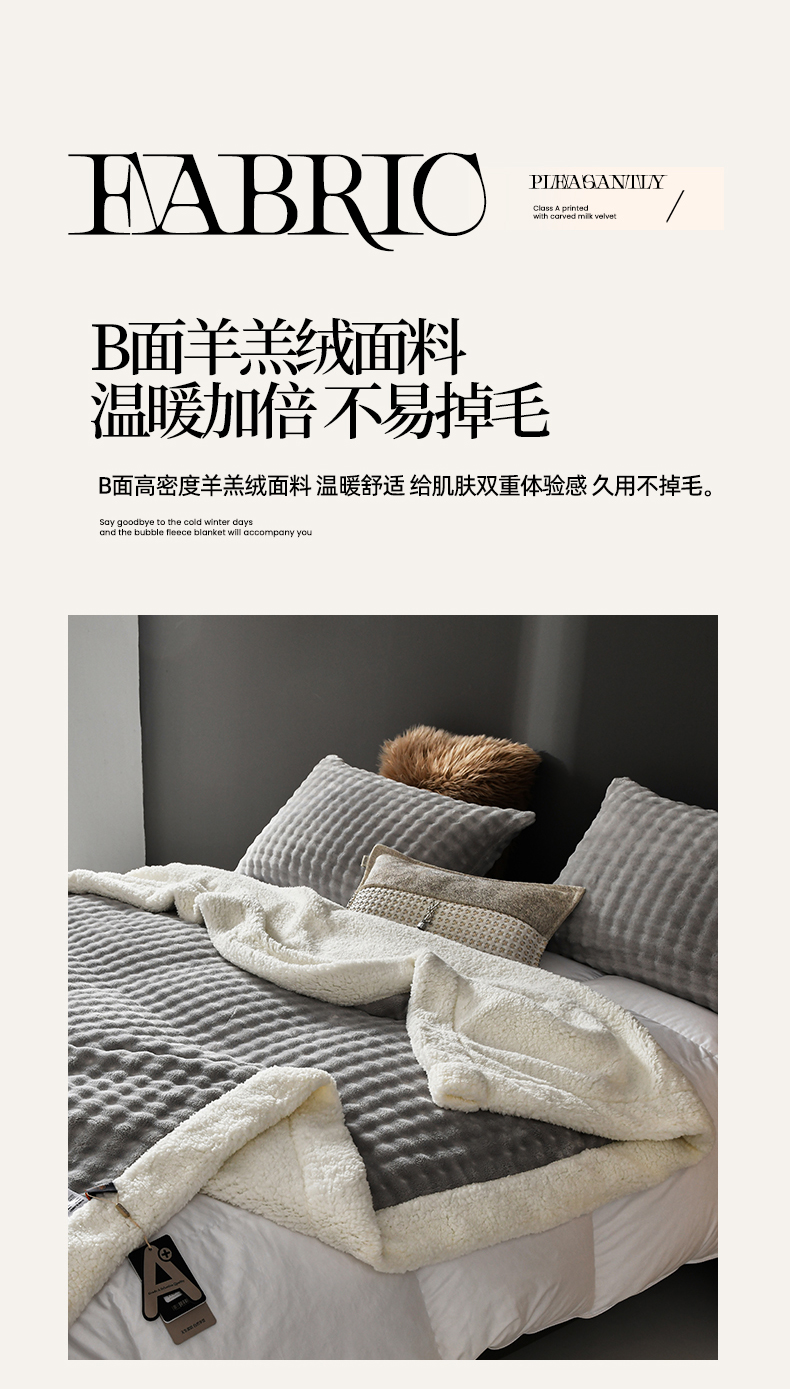 网客家纺 2024新款雕花绒泡泡绒羊羔绒毛毯 银河灰