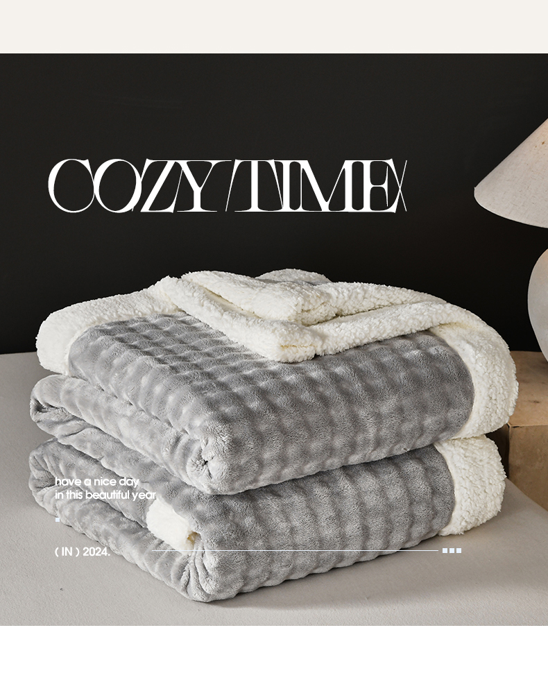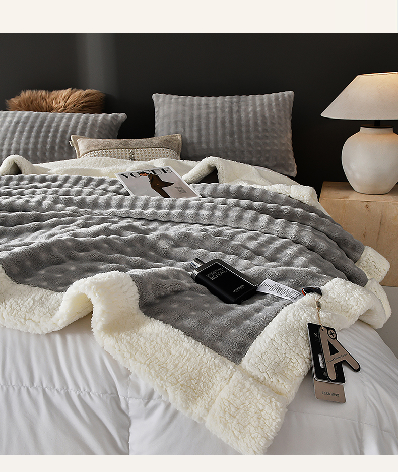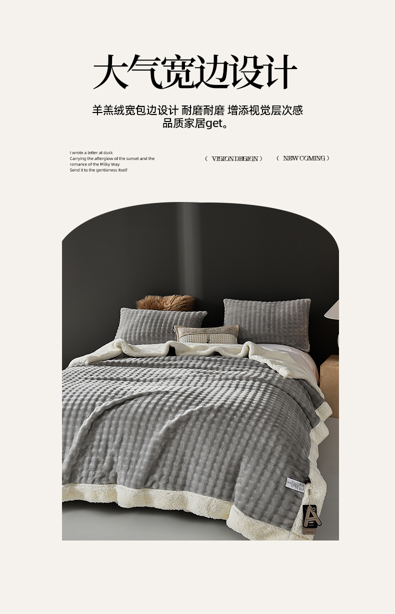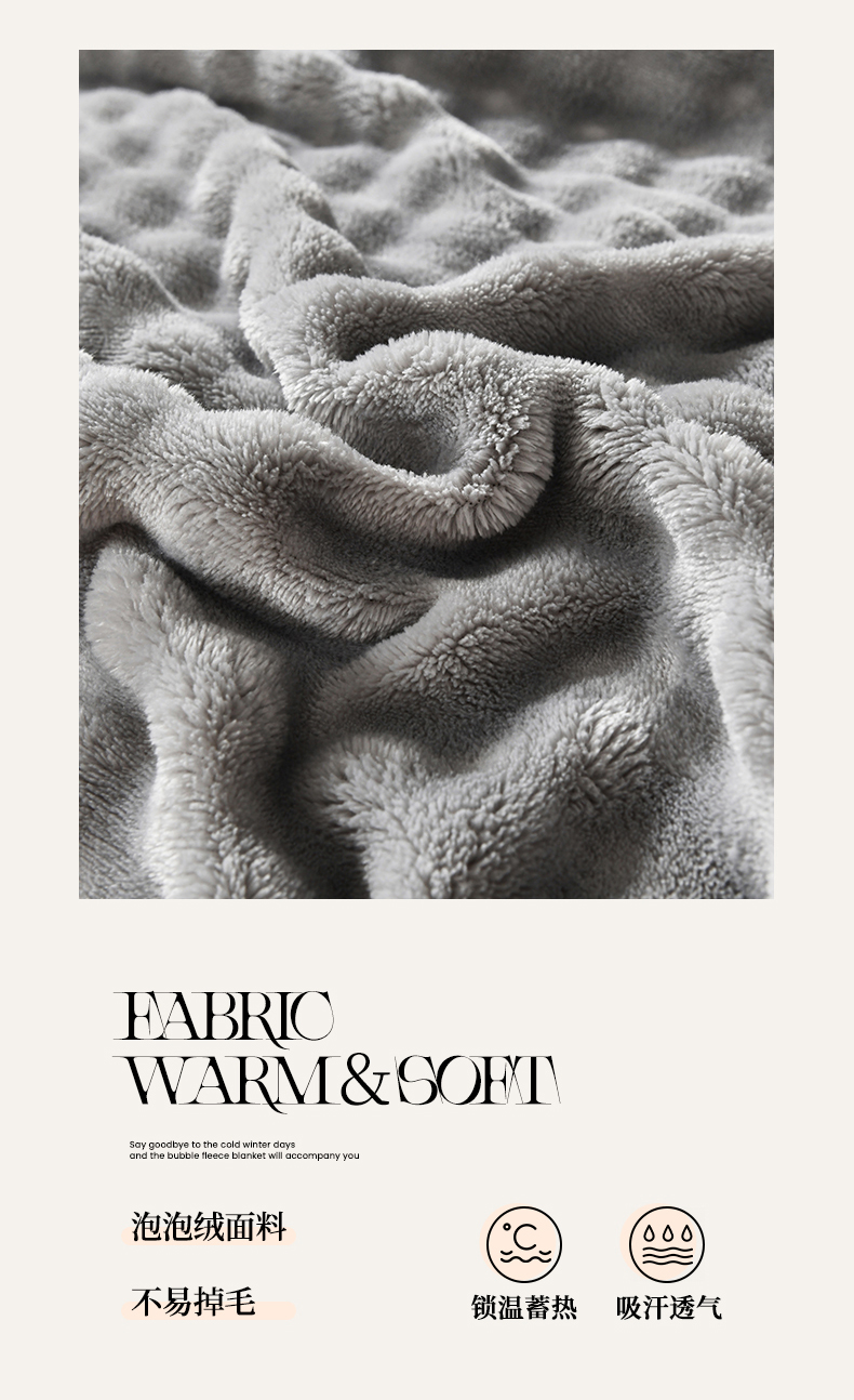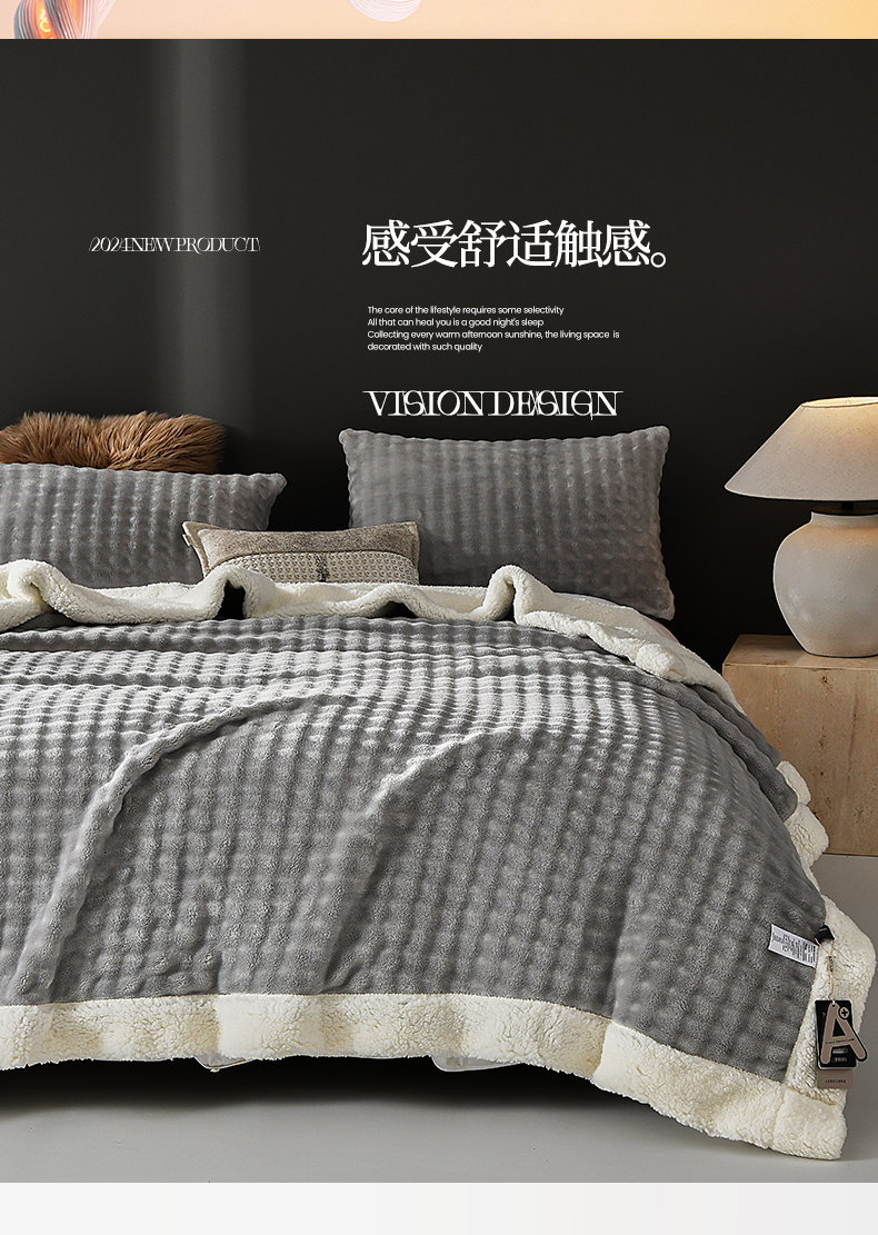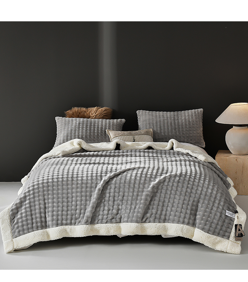 网客家纺 2024新款雕花绒泡泡绒羊羔绒毛毯 银河灰