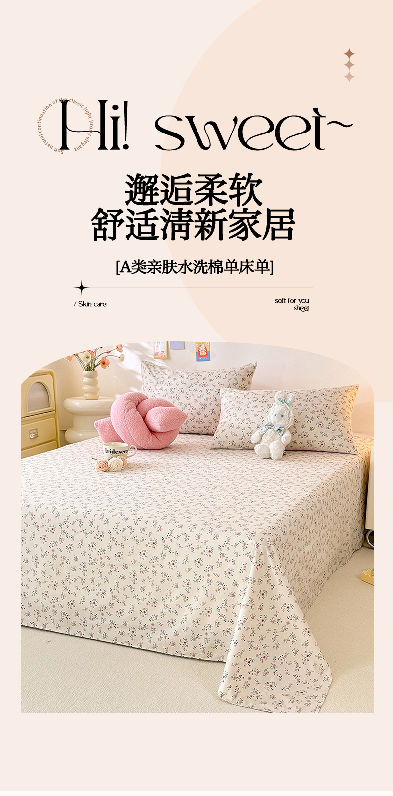 妖妖家纺 2024新款超柔软糯水洗云朵棉印花单床单 后花园