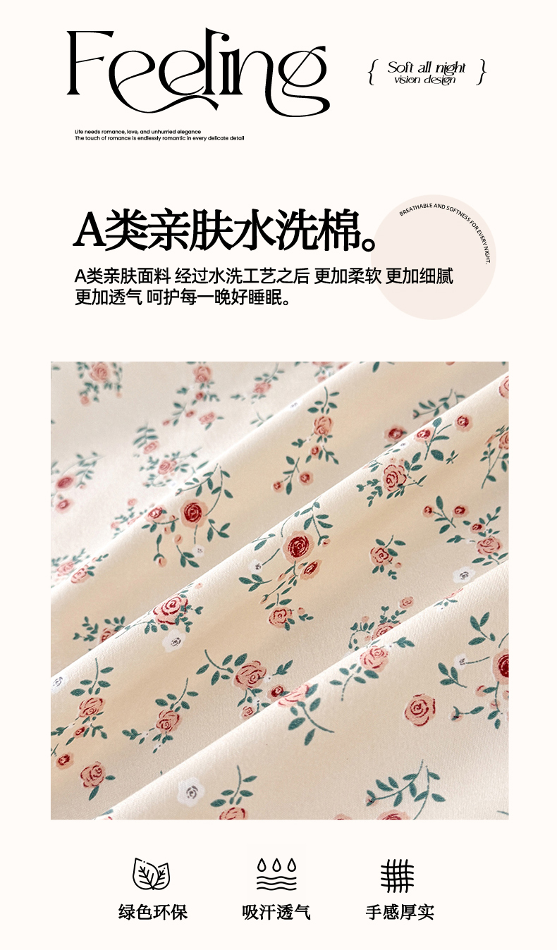 商品名称:妖妖家纺 2024新款超柔软糯水洗云朵棉印花单床单 后花园