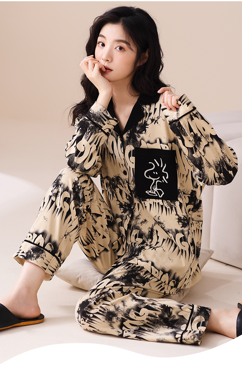 商品名称:春秋季纯棉开衫翻领睡衣少女卡通甜美长袖可外穿家居服套装 664女
