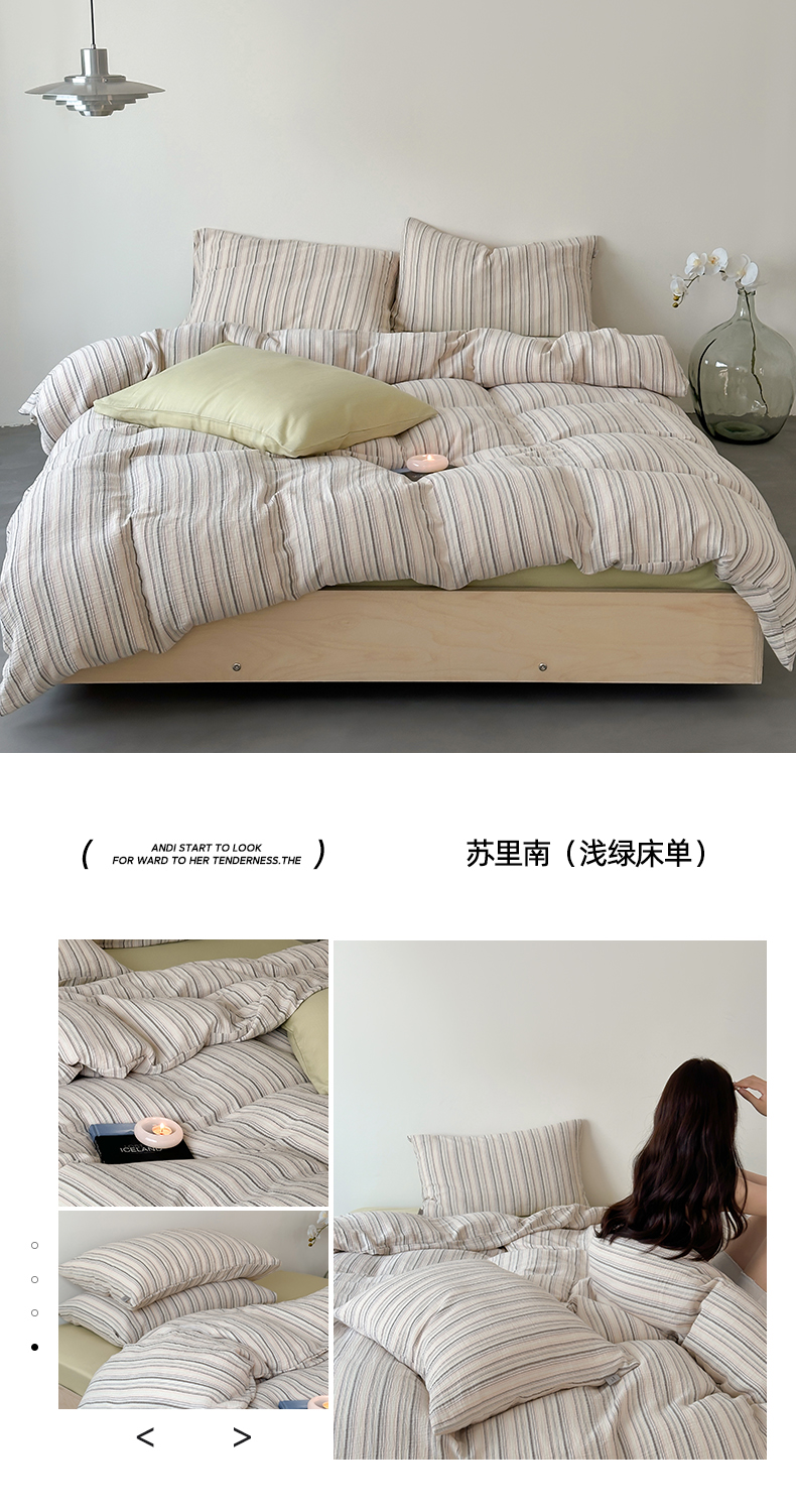 商品名称:玛奇朵 2024新款文艺复古色织双层皱皱纱-苏里南系列四件套 苏里南(浅绿床单)